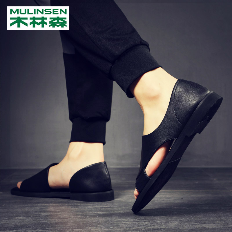 Wood Linen Sandals Sandals Men's Wave Summer Pure Cow Leather Driving Beach Shoes Men Genuine Leather Breathable Deodorant Outside Wearing Sandals