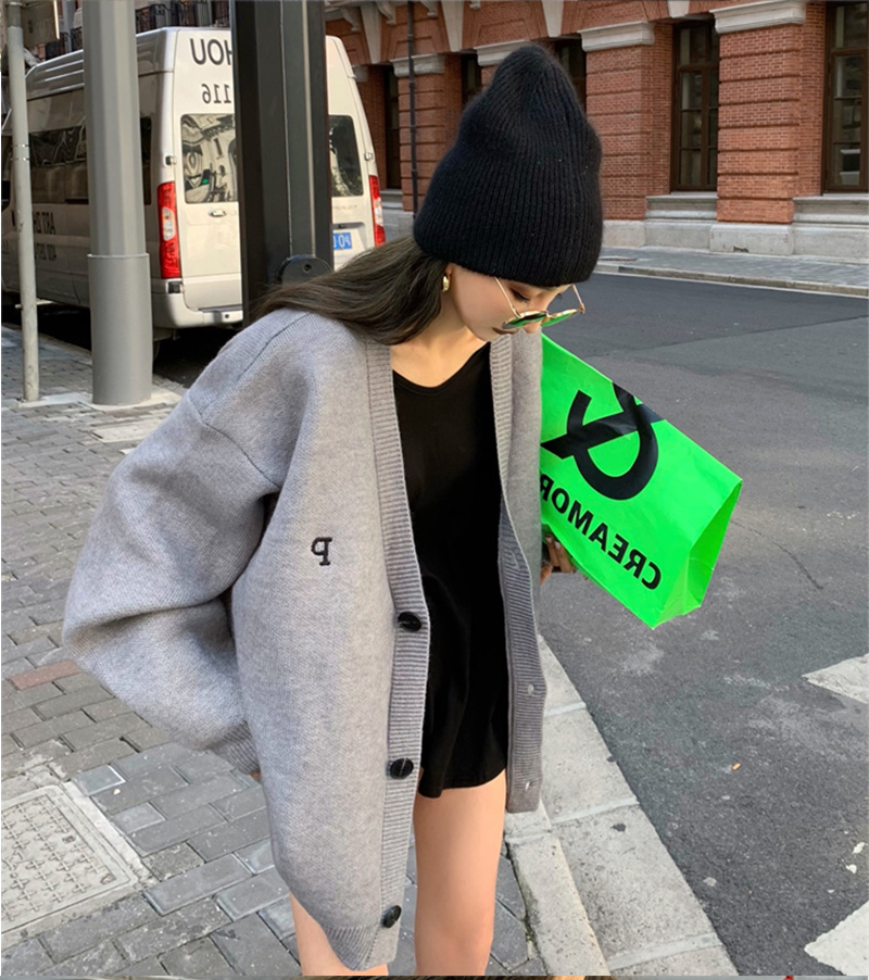 2022 Spring new advanced sensfeel V collar cardigan knitted jacket Women's lazy loose soft glutinous sweater outsuit