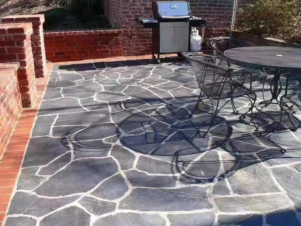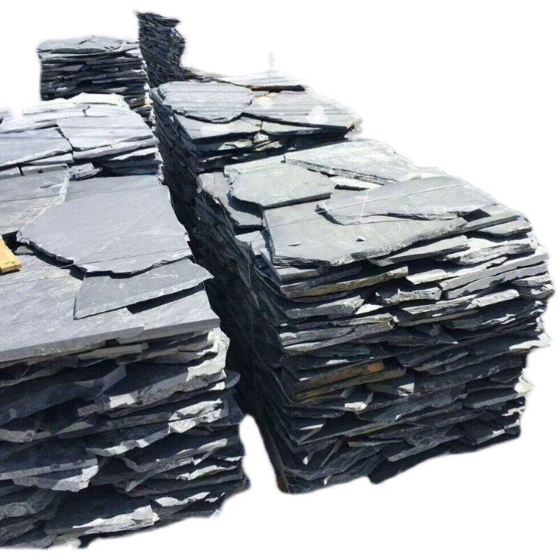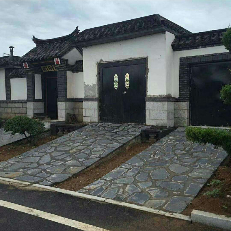 Natural rust black irregular fragmented chaotic garden courtyard square bluestone floor tile pool landscaping shale