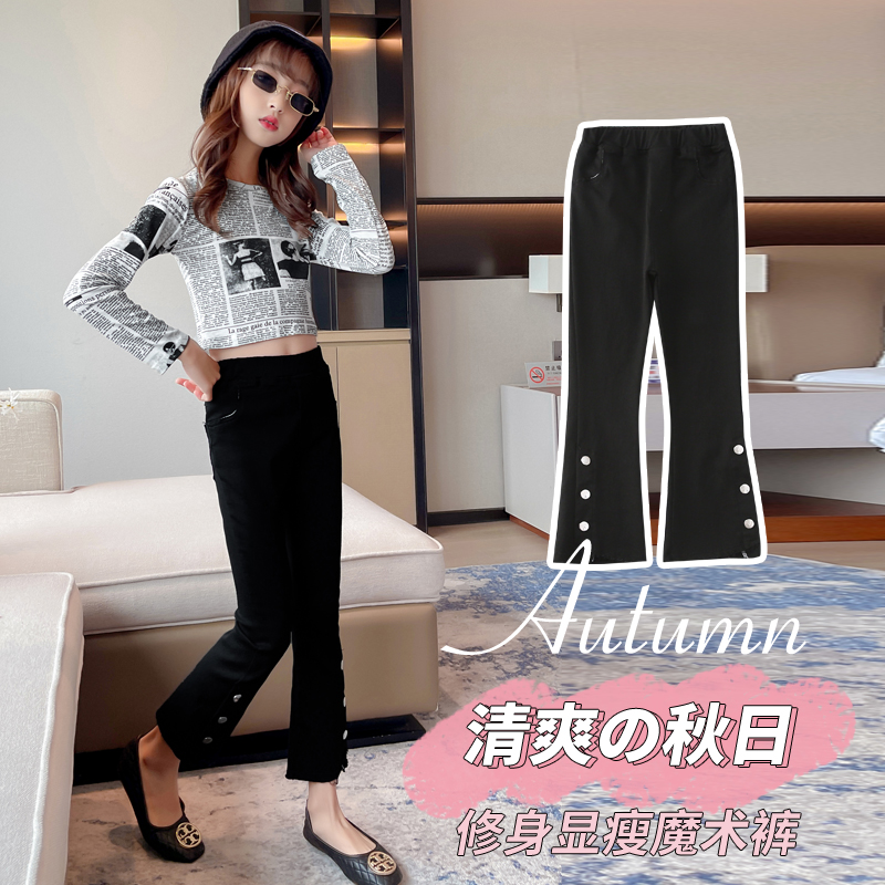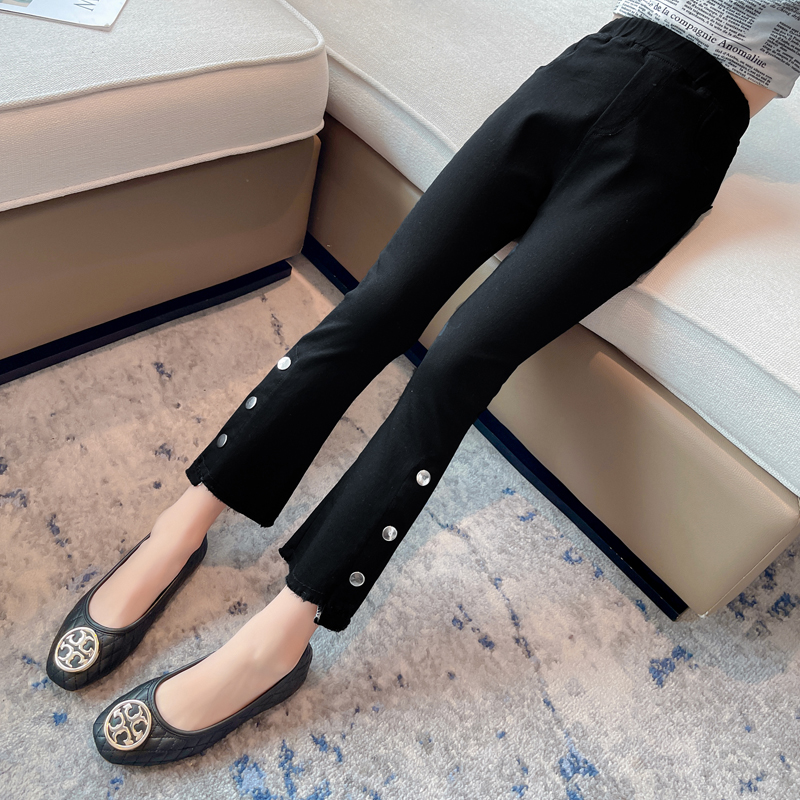 Children's pants spring and autumn thin section outer wear medium and big girls flared pants black elastic little girl casual pants Western style