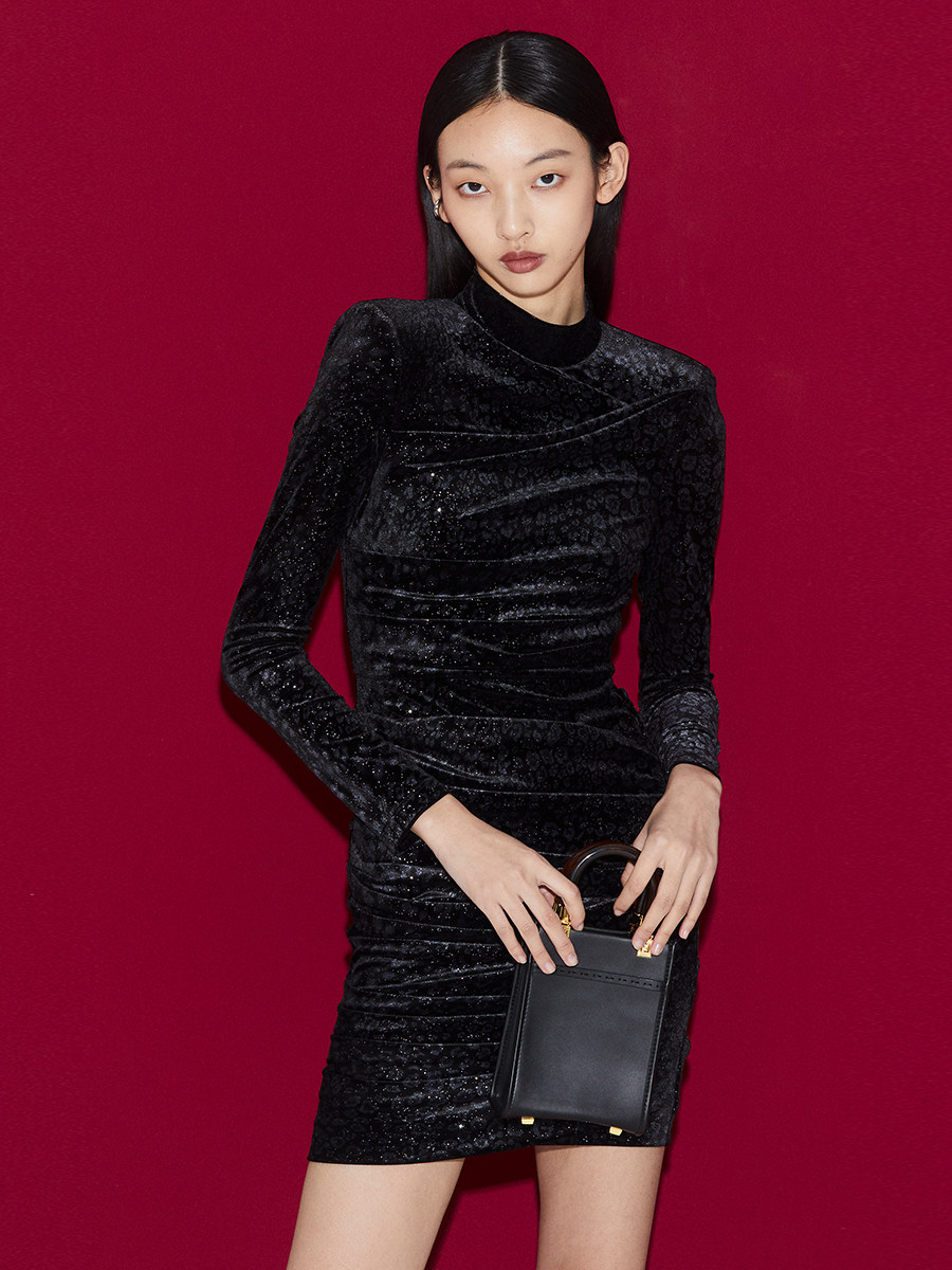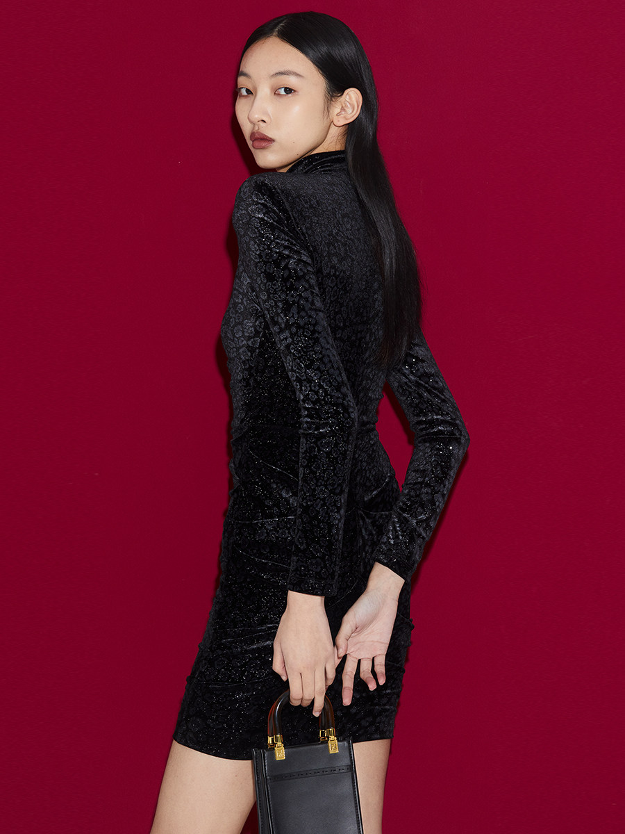 Boss Z's sexy little dress dress female three-dimensional shape imported velvet fabric domineering BAO WEN dress female