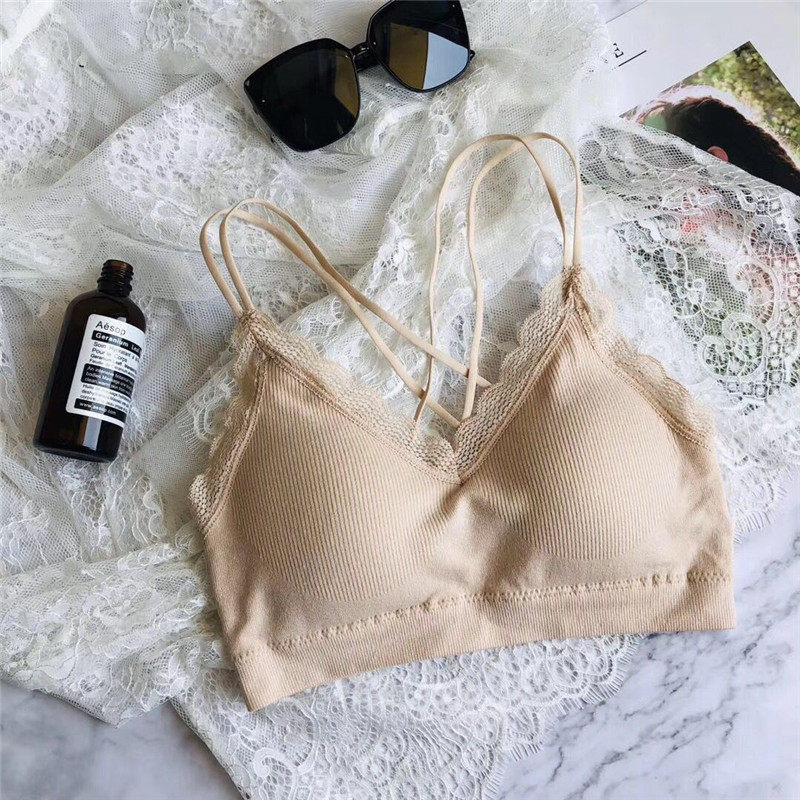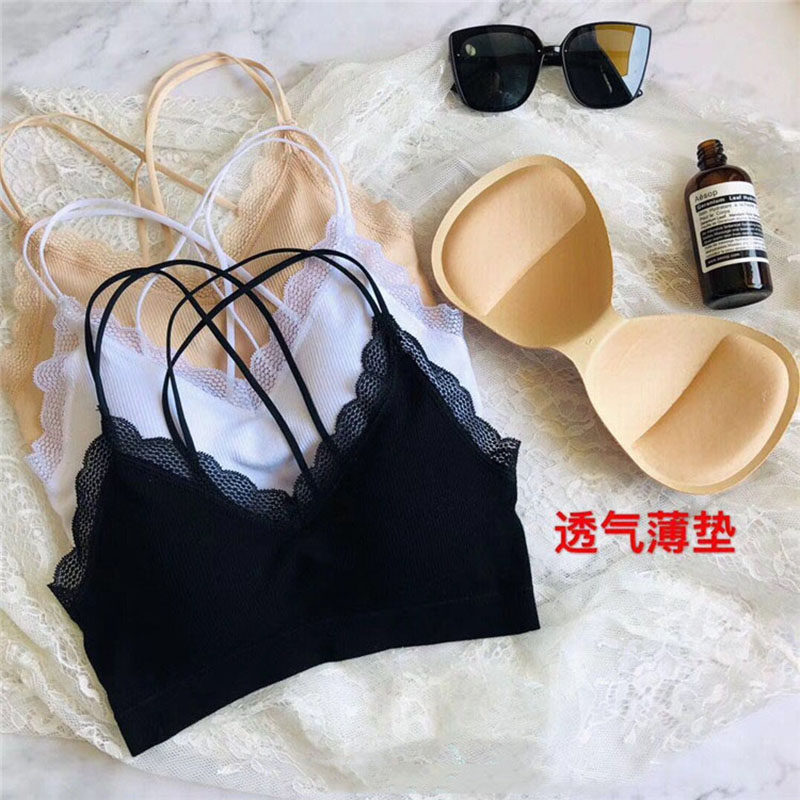 Japanese summer beauty back underwear ladies thin cross strap chest pad one bra no steel ring wrap chest bottoming tube top