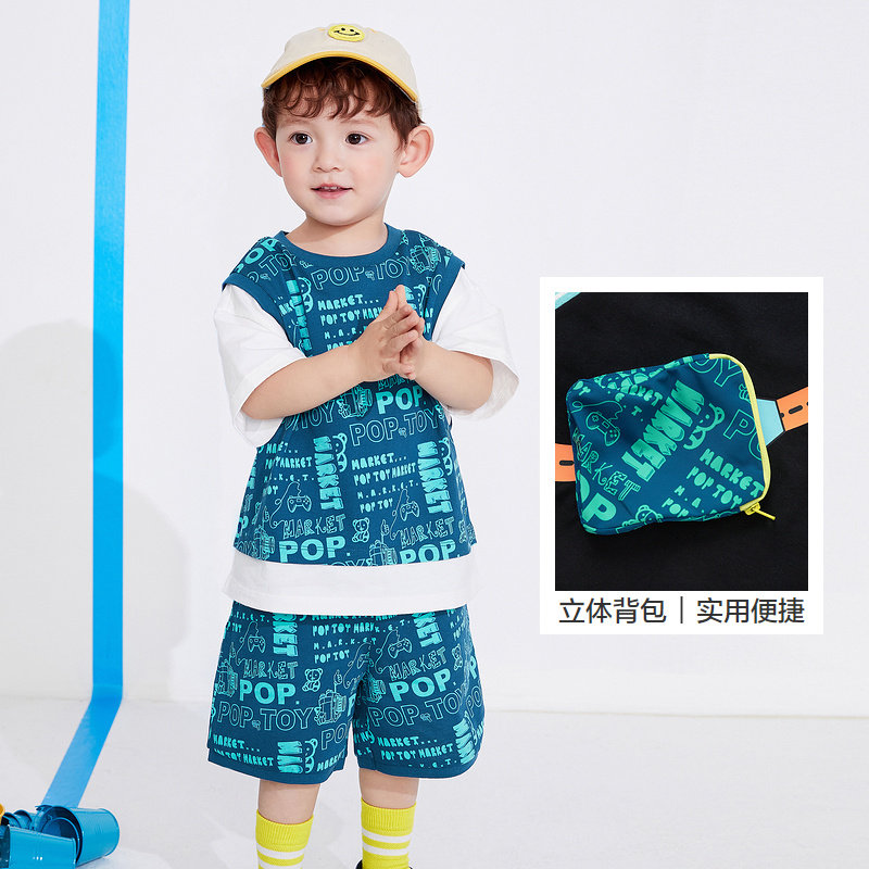 Balacabara boy short sleeve suit The boy baby fake two children two sets 2022 summer dress new children's clothes