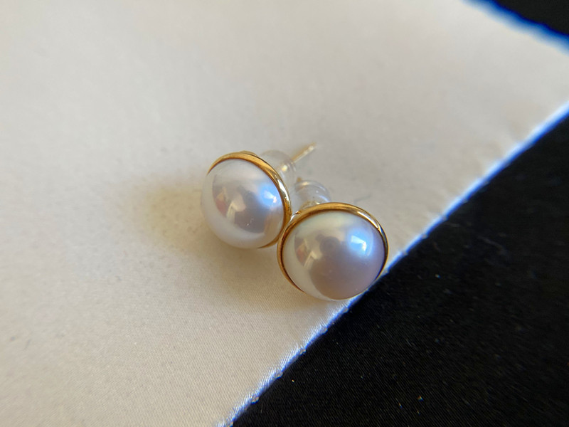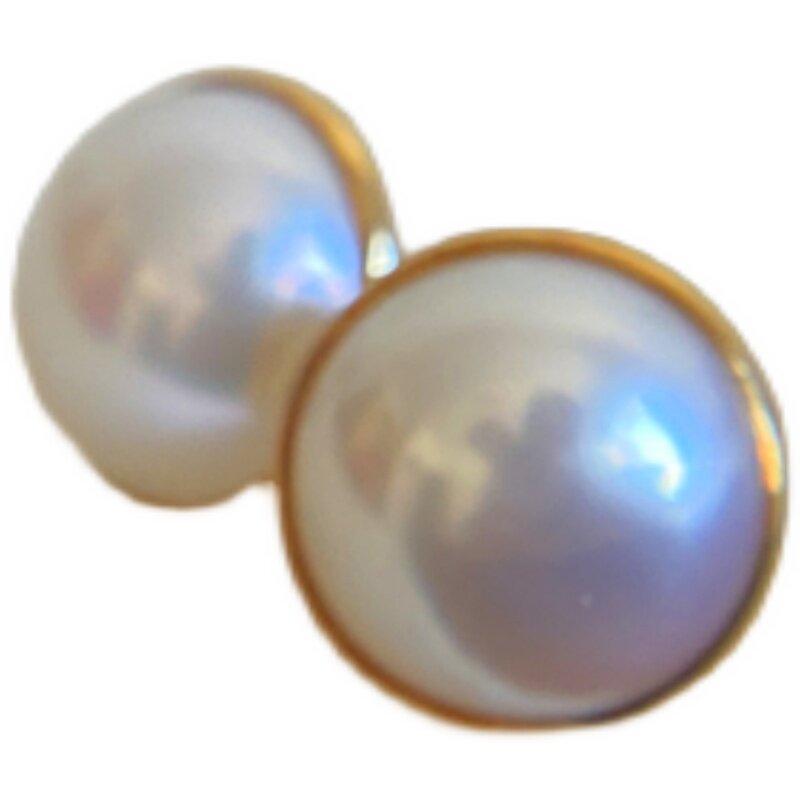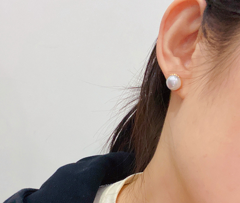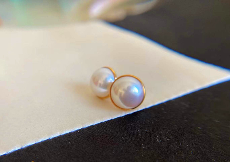 18K gold mabe-ear nail natural seawater freshwater pearl mirror light extremely bright with pearls earrings-Taobao