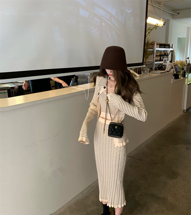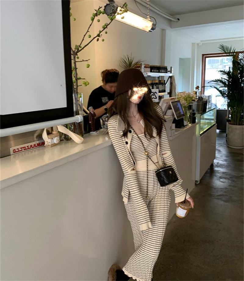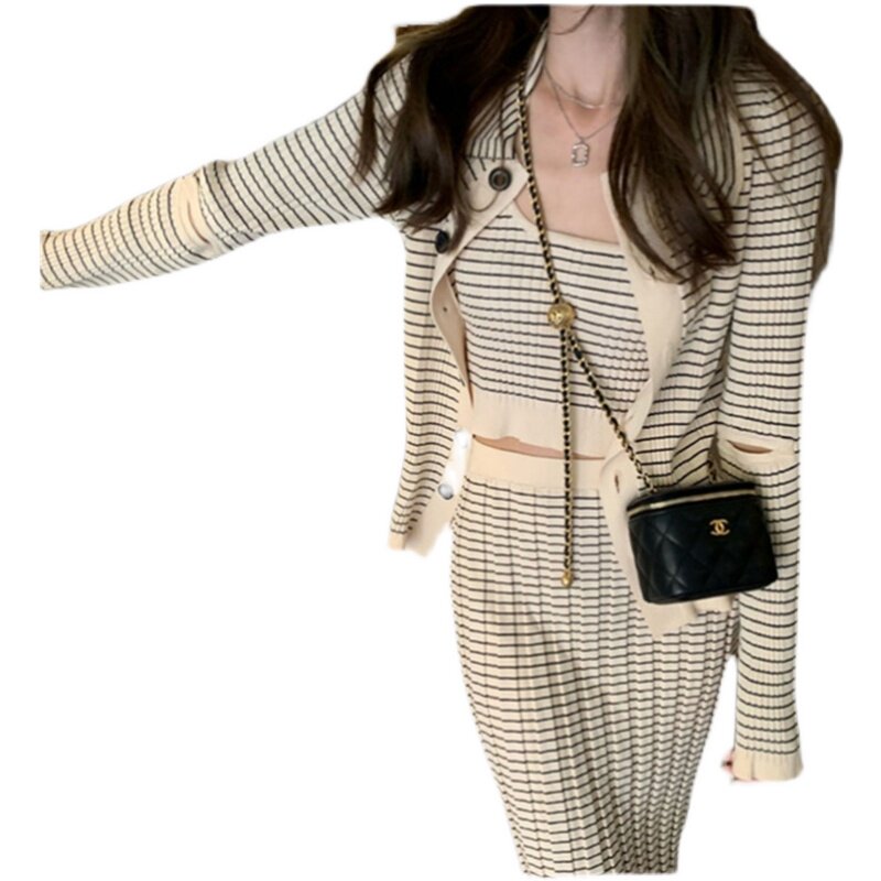 2022 Spring opening spring new full of stripes with three sets of women