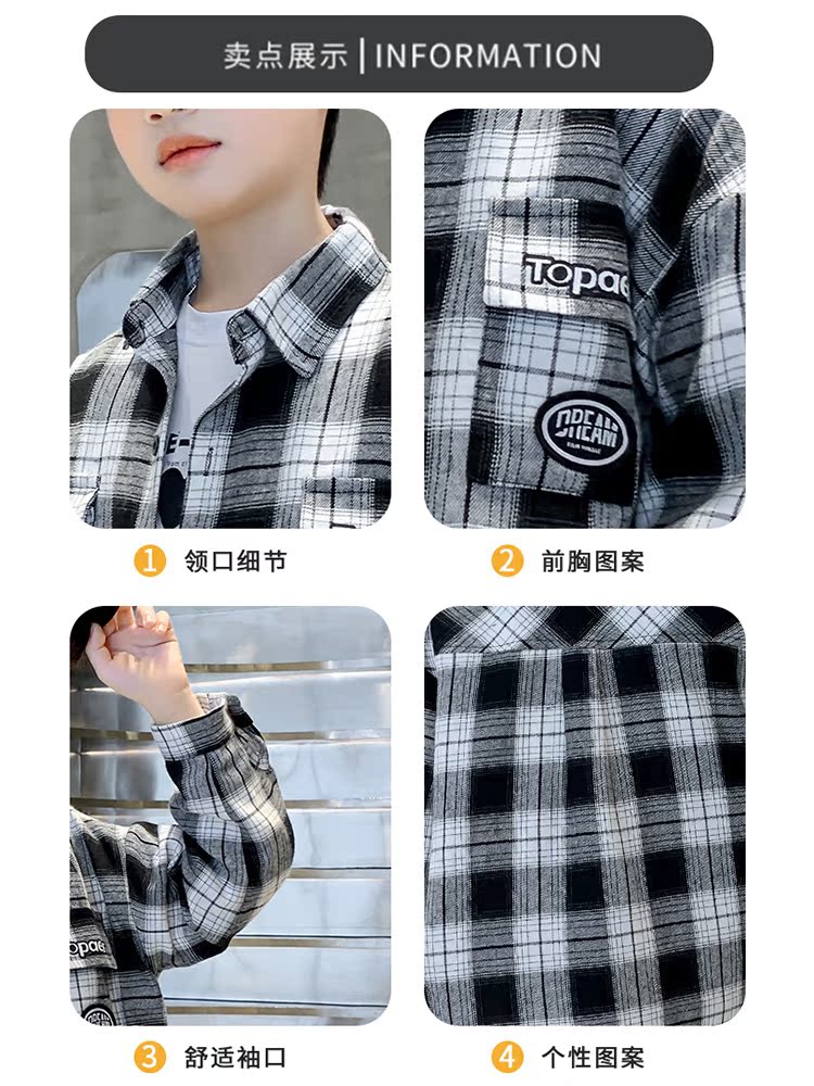 Boys plaid long-sleeved shirts spring clothes big boys shirts 2022 spring and autumn new trendy brand Korean version fried street boys
