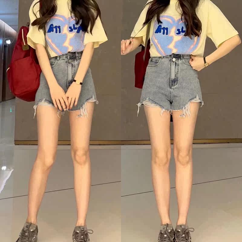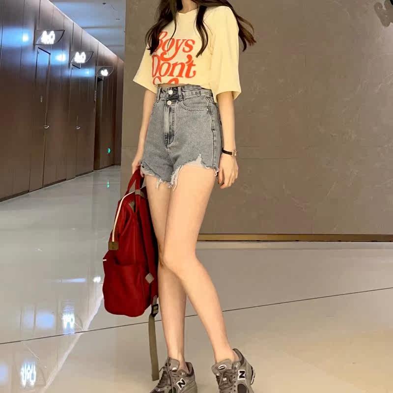 Denim shorts women's high waist and thin 2022 new summer design sense niche a word babes wear trendy ins