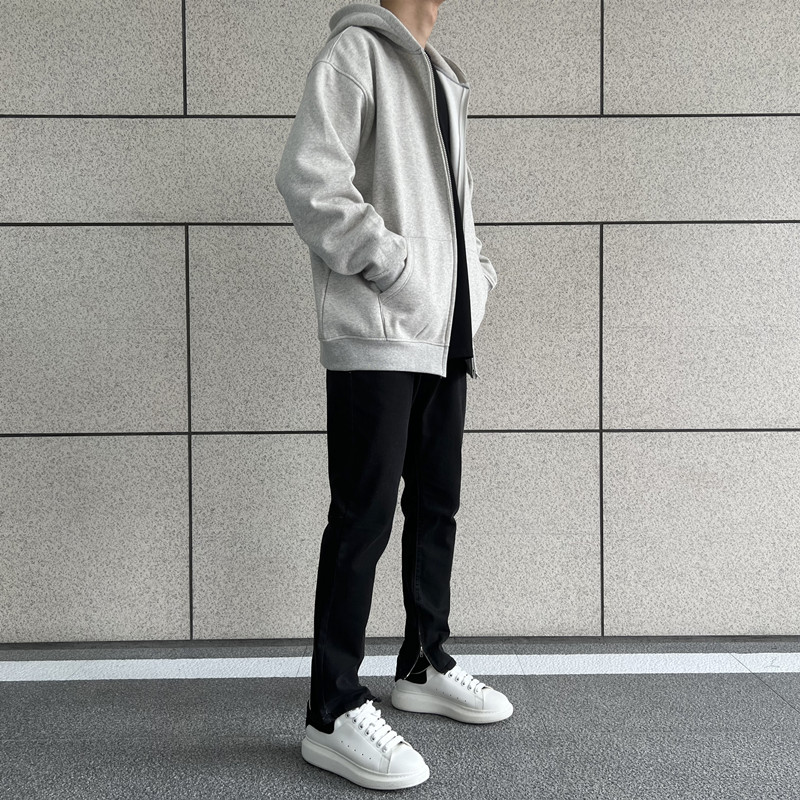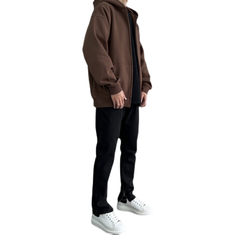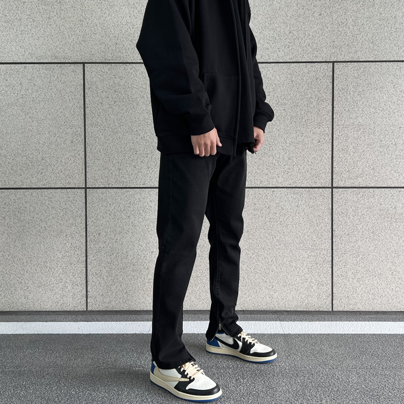 CEZPHISON basic trousers zipper black elastic jeans high street casual trousers ins straight pants men