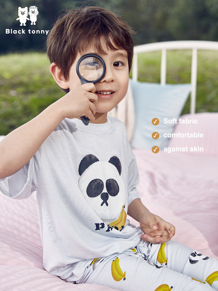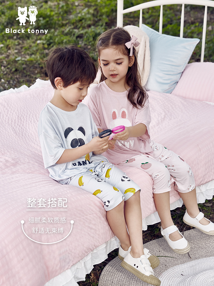 Little Black Tony Tony boys Modal home clothes short-sleeved two-piece suit children's boys spring and summer cartoon children's clothing