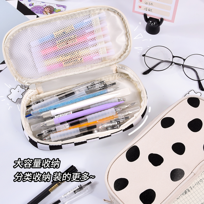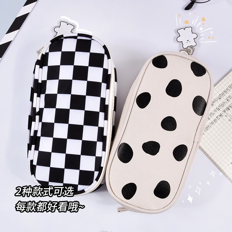 Large Capacity Chessboard Lattice Pen Pouch New Ins Day Ensemble Girl High Face Value Small Crowdpencil College Pencil Case Brief
