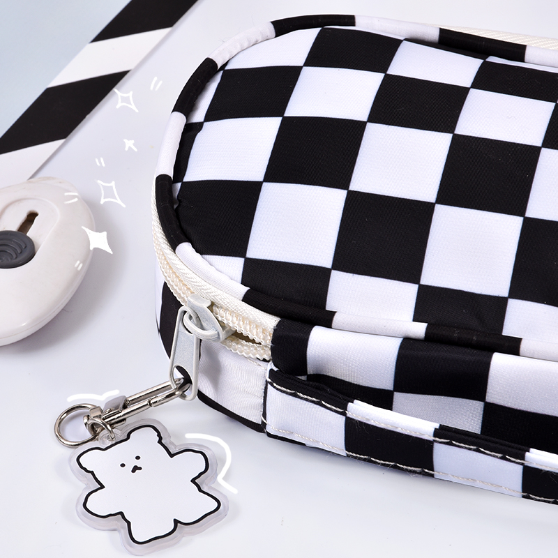 Board Gripen Pen Bag Small Bear Pendant Milk Box Pen Bag Small Bear Pendant Chessboard Grid pen bag Milk Box Pen Bag