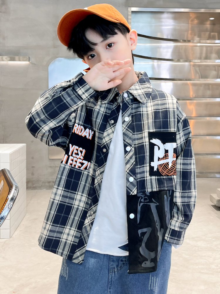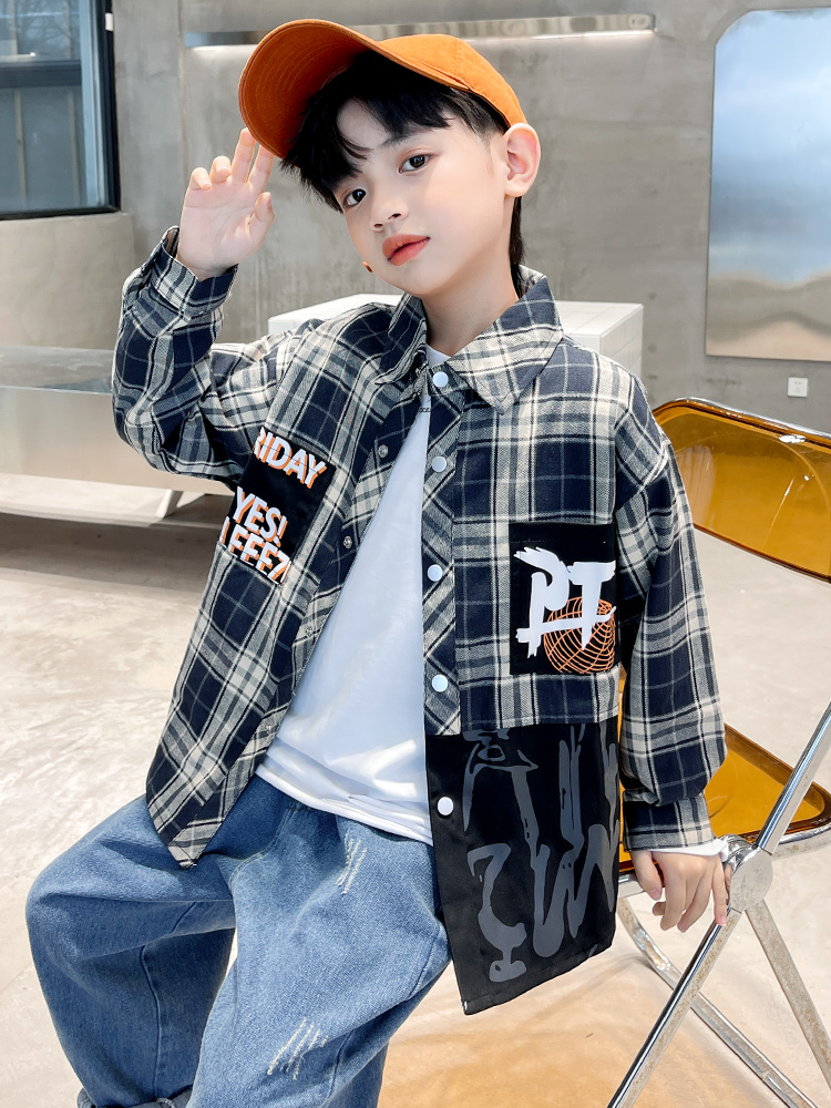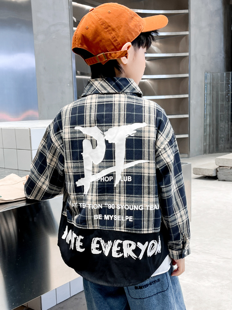Big boy plaid shirt autumn clothes children's shirt jacket 2022 spring and autumn new trendy brand Korean version fried street boy