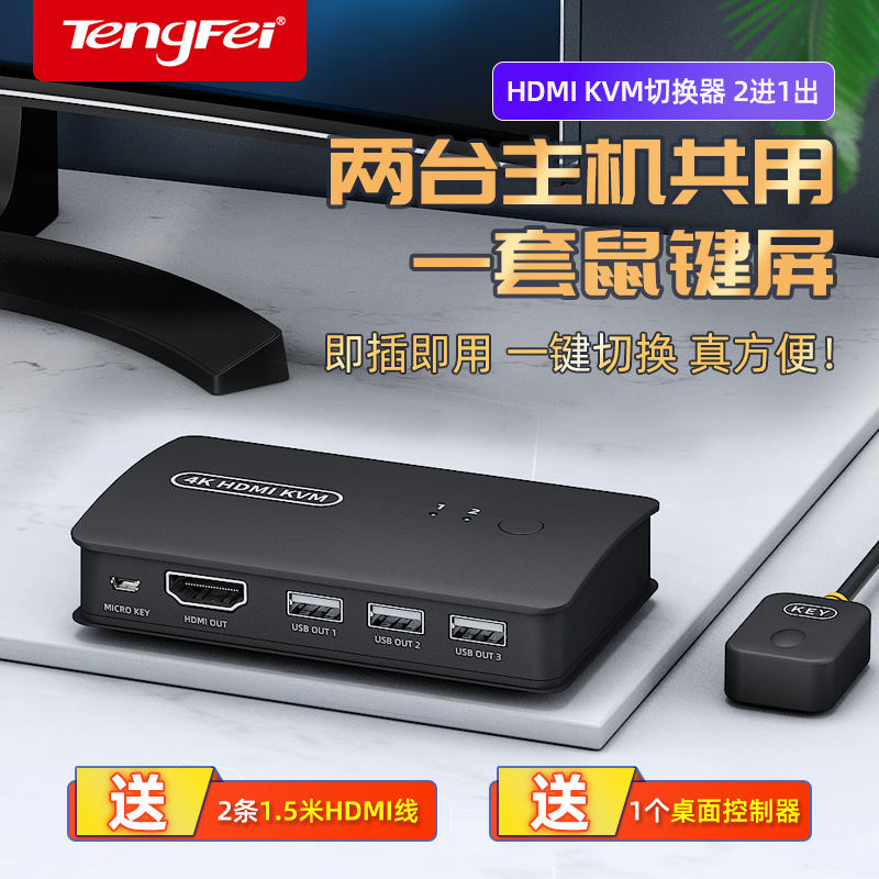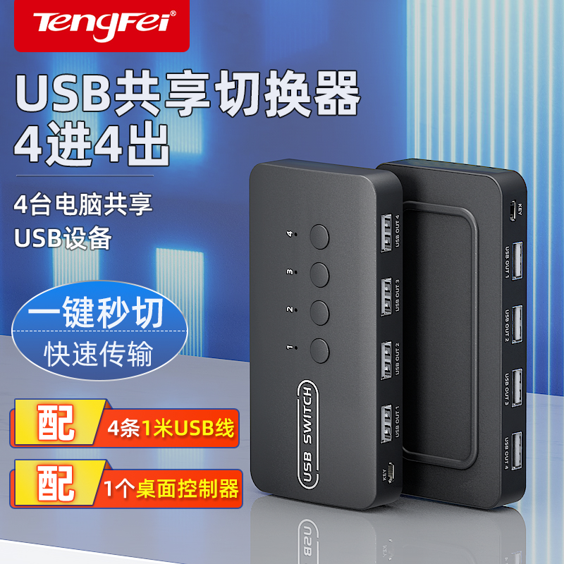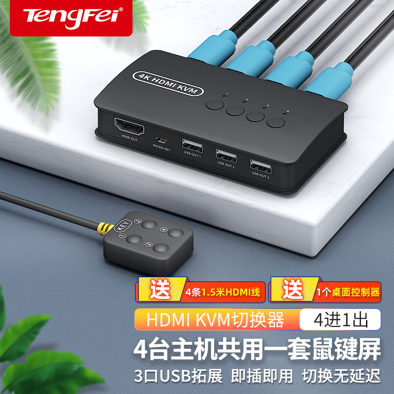 Tenfei kvm switcher hdmi two-four computers shared usb keyboard mouse display u disc host desktop 2 in 4 out of 4-outlet converter printer co-hearer one tug-two-drag 4-Ta