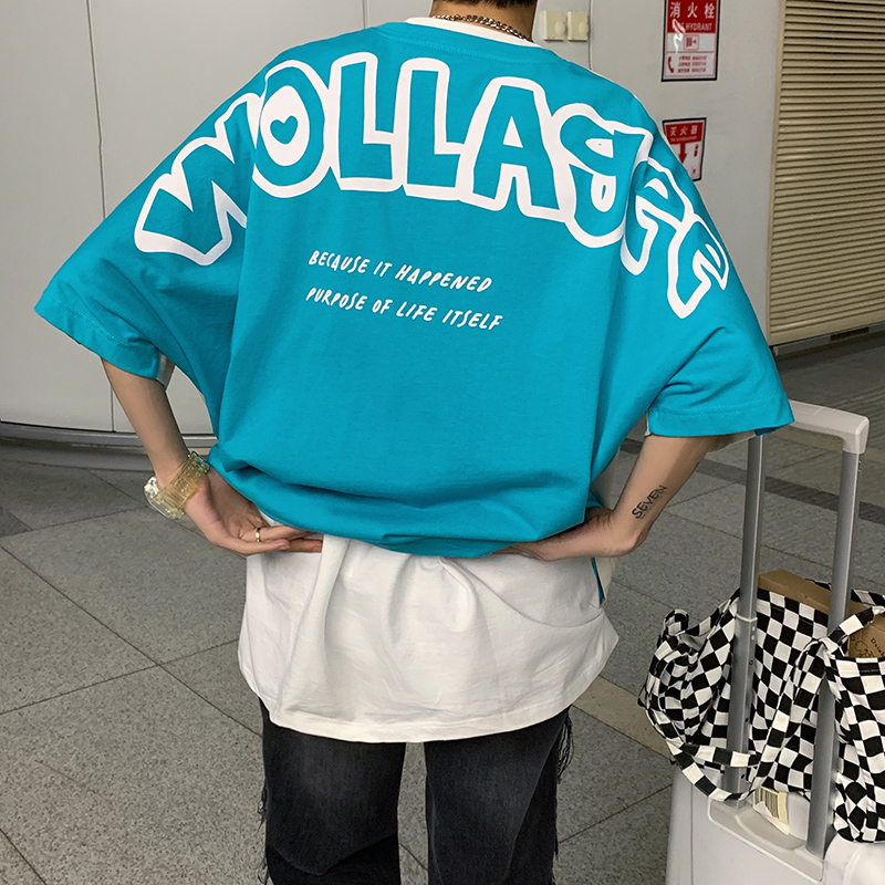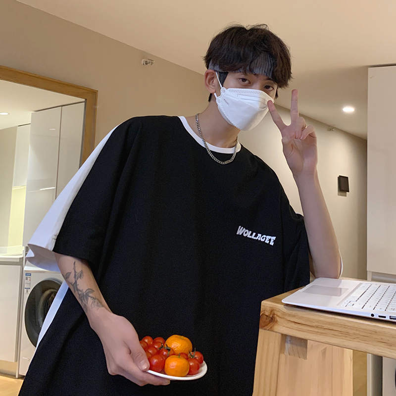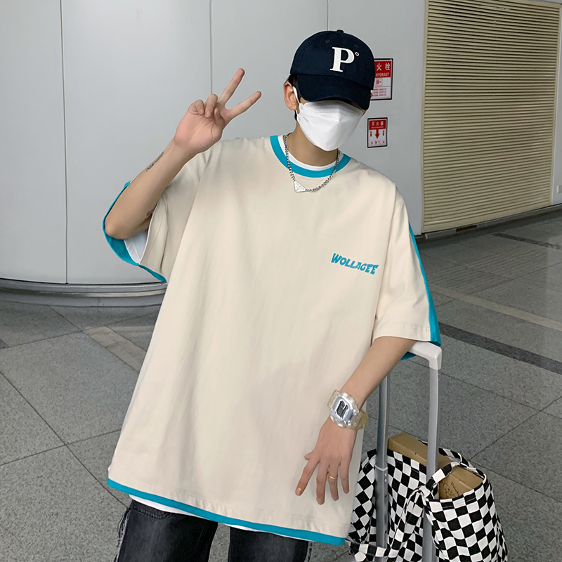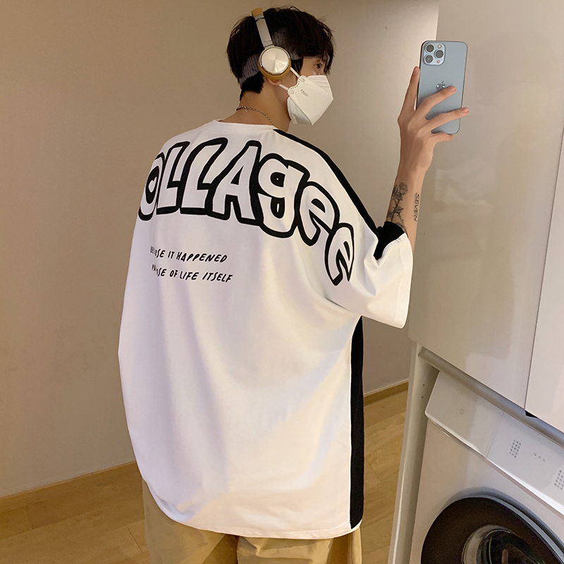 American hiphop black and white double parquet T-shirt female design feeling small crowd street oversize short sleeve wave cards cool