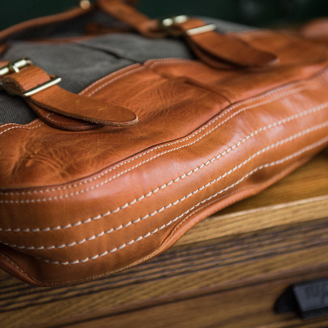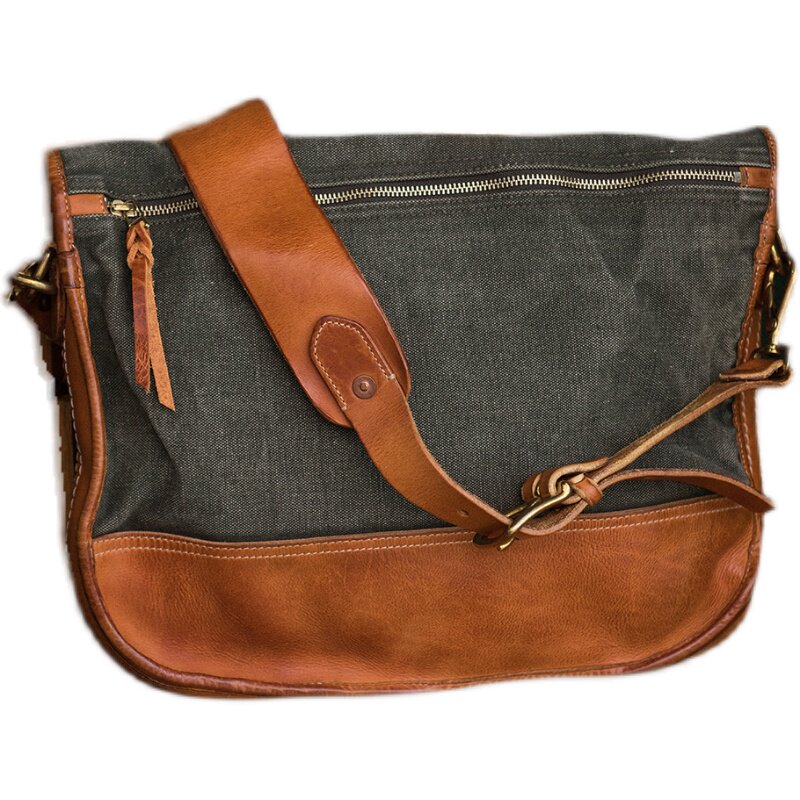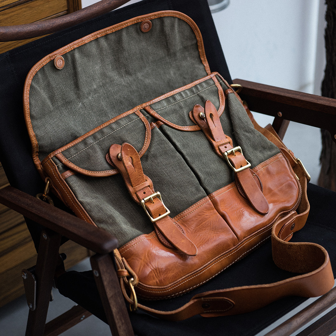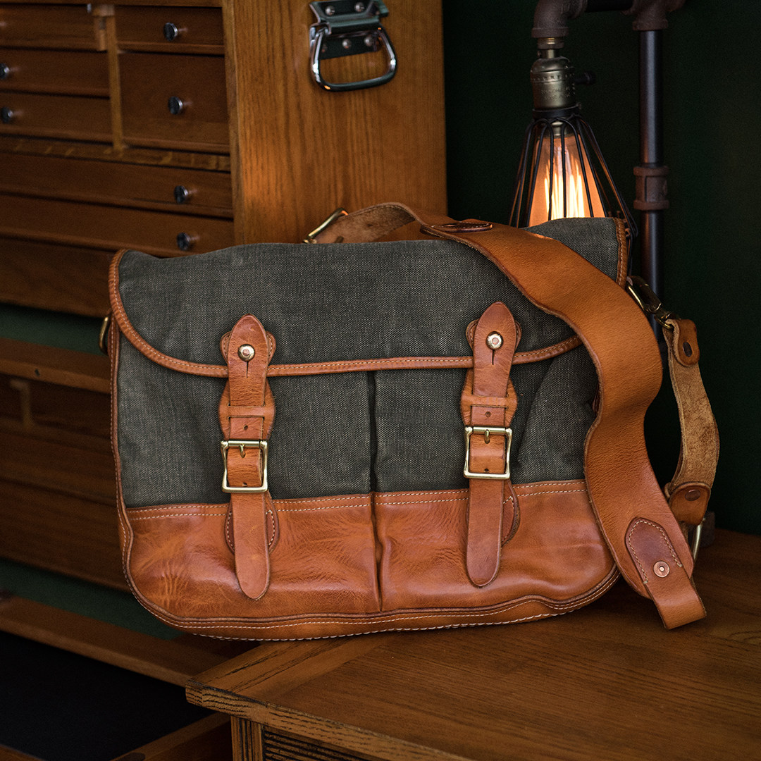 American Hardcore Skew Cross Mailbag Full Grain Pasta Natural Plant Tannic Top Layer Cow Leather High Density Heavy Pound Old Military Cloth