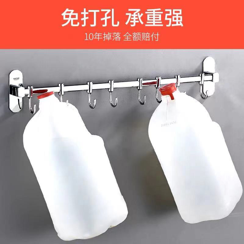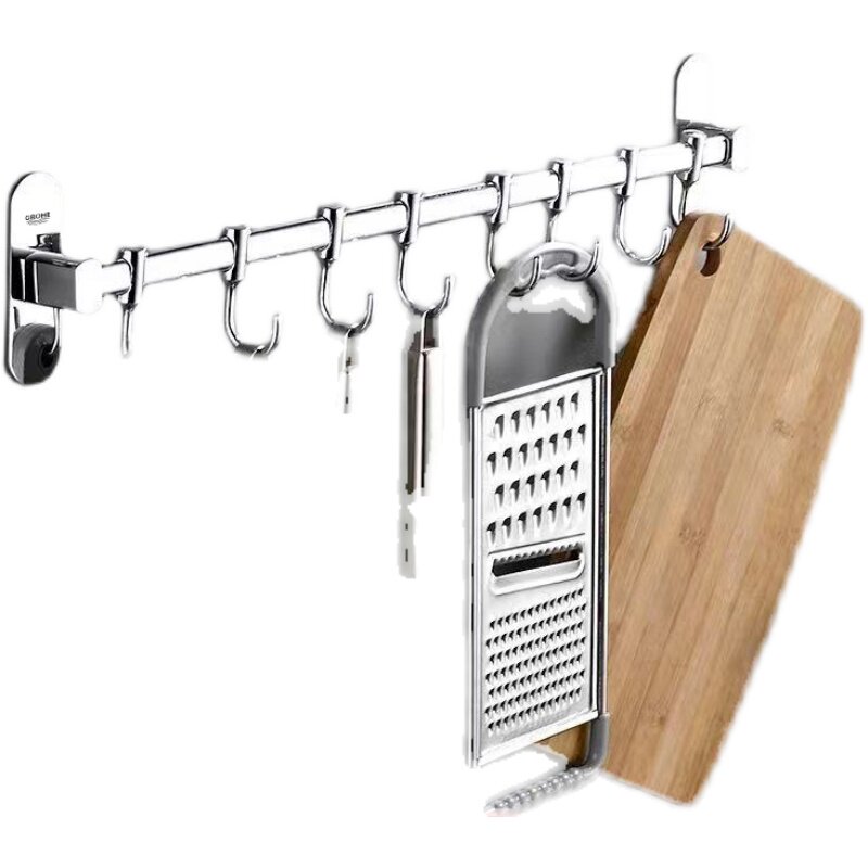 GROHE kitchen non-punching hook rack hanging rod wall hanging stainless steel spoon multifunctional kitchen utensil storage shelf