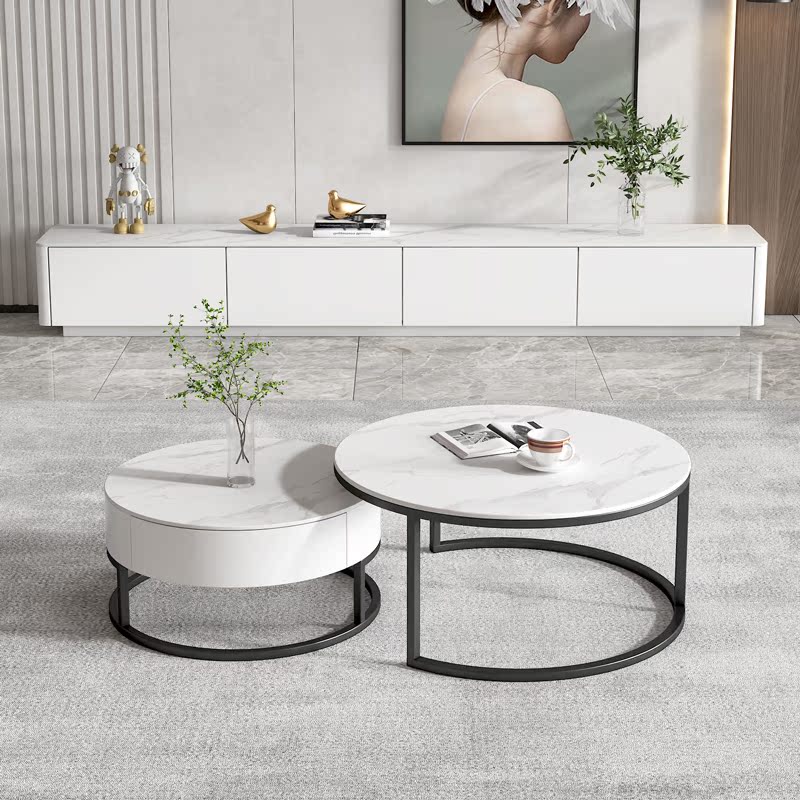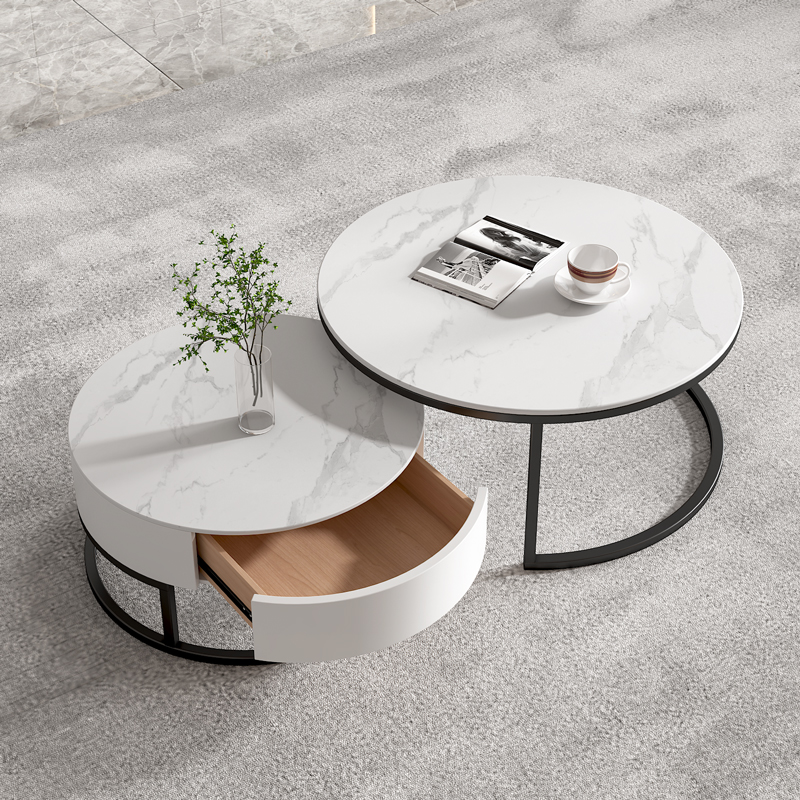 Modern minimalist tea table round combination light extravagant small family style home living room Nordic wind retractable Fancy Tea Table table