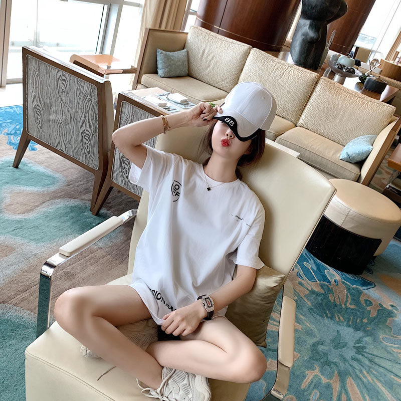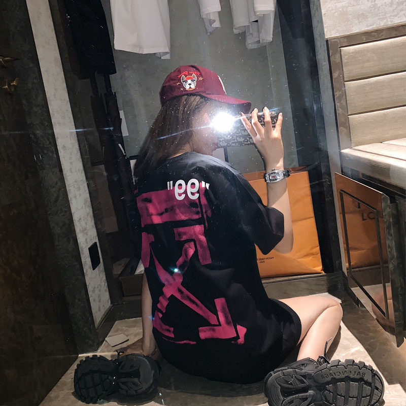 Boomer short sleeve T-shirt woman 2022 Summer graffiti Arrow pure cotton loose lovers large size for a long version of the undershirt