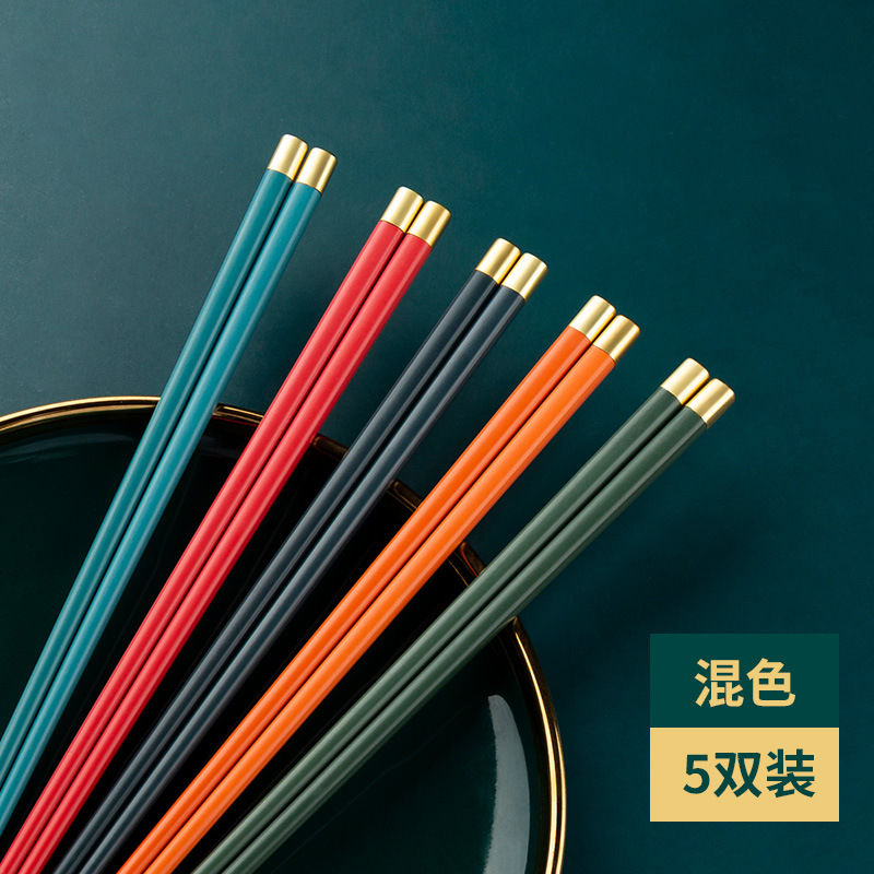 (5 Color) Alloy chopsticks Home One person One Double distinguish Chopsticks Household Pointed Chopsticks Family Meal Chopsticks