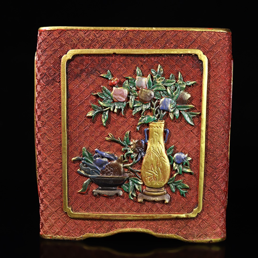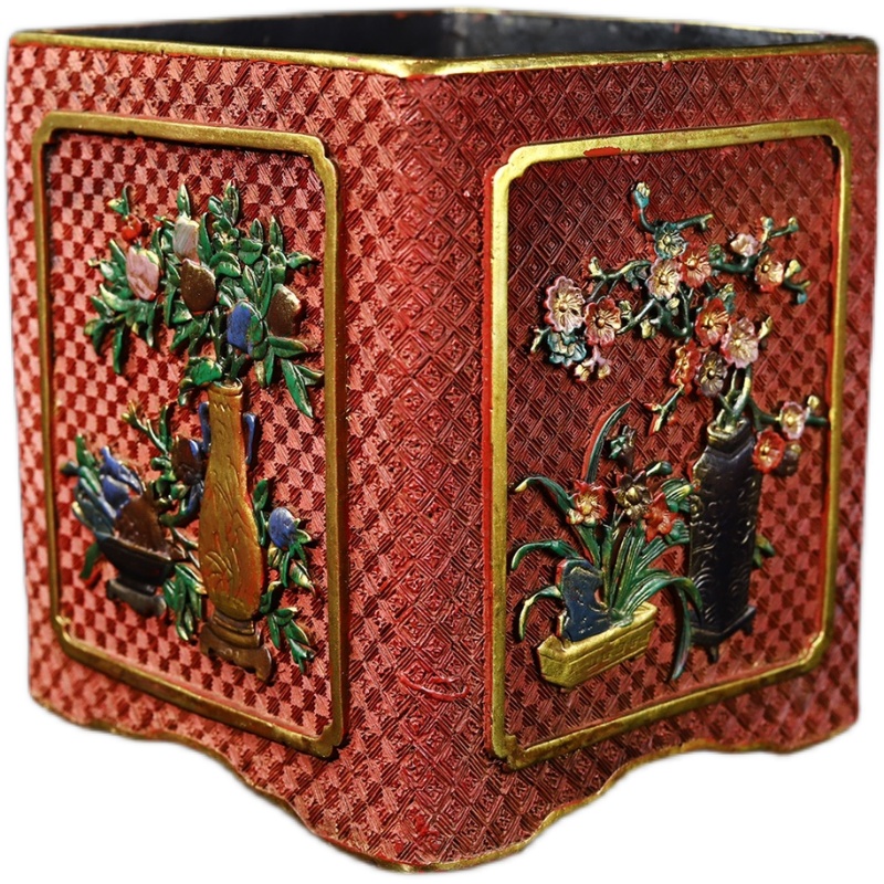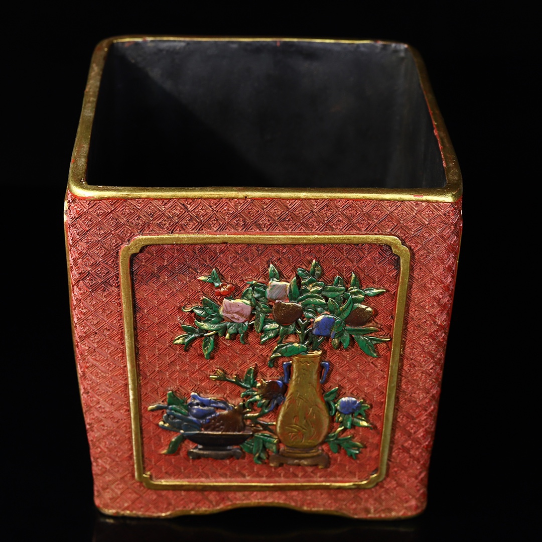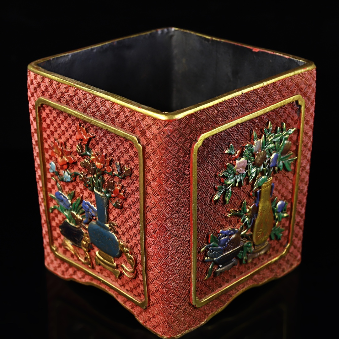 Old Tibetan Old Beijing lacquer color drawing Ping An Fugui Fang Pen Holder Wenfang Four Treasure Lacquerware Pen Holder