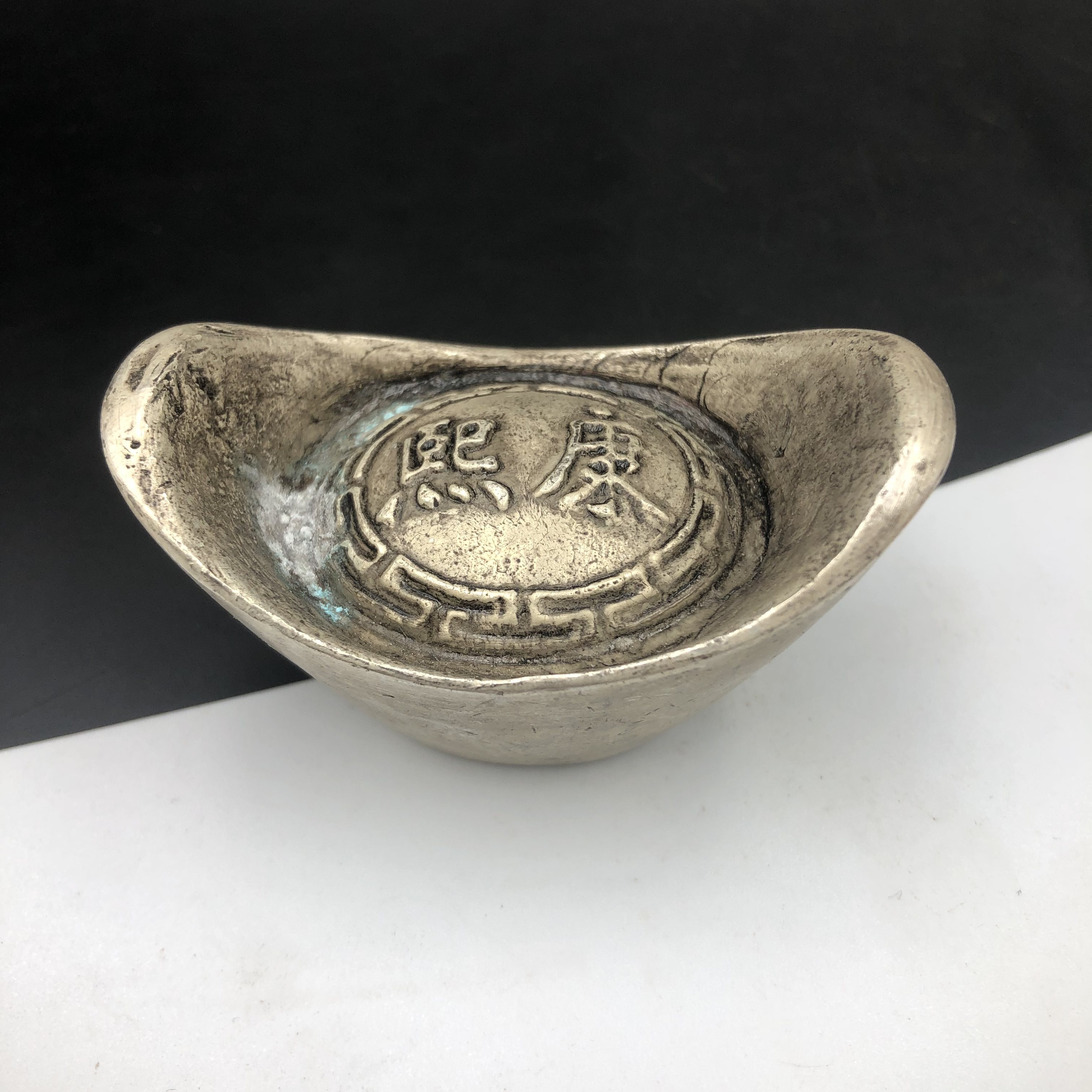 Ancient coin collection of large clear silver ingots Kangxi silver ingots anti-character treasure ancient coins