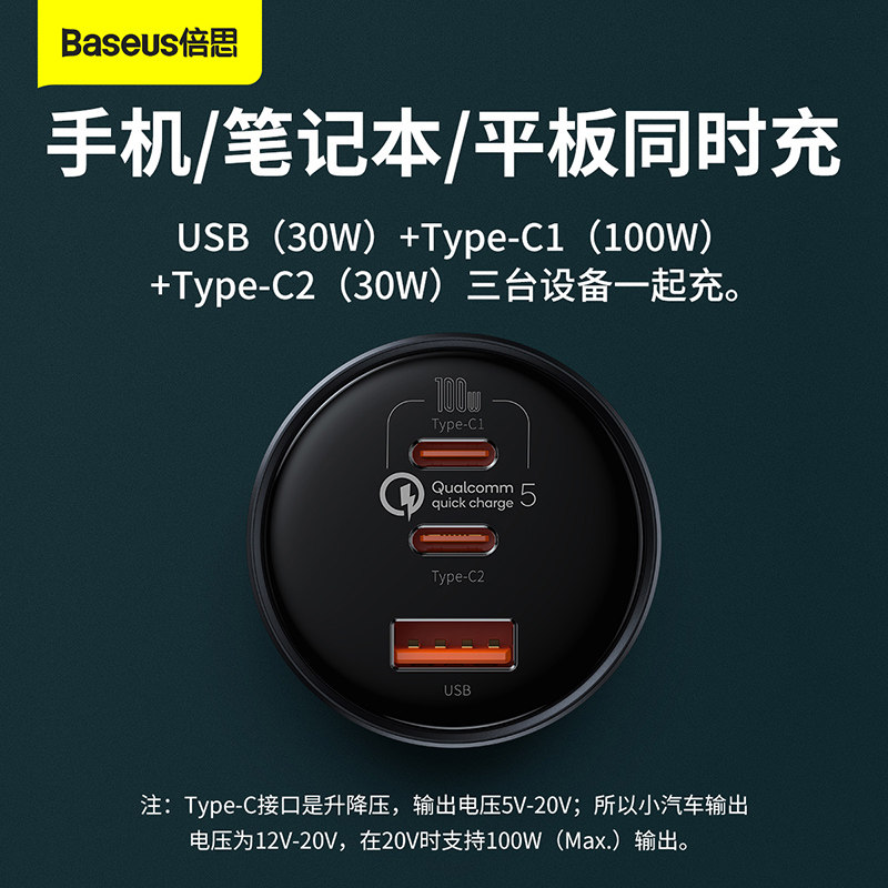 Double thought onboard charger 100w High power cigarette lighter conversion plug tablet phone notebook Fast charge 160W