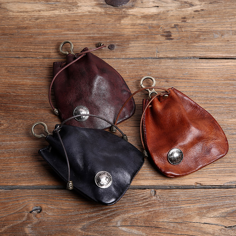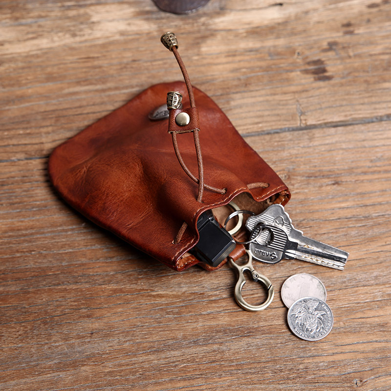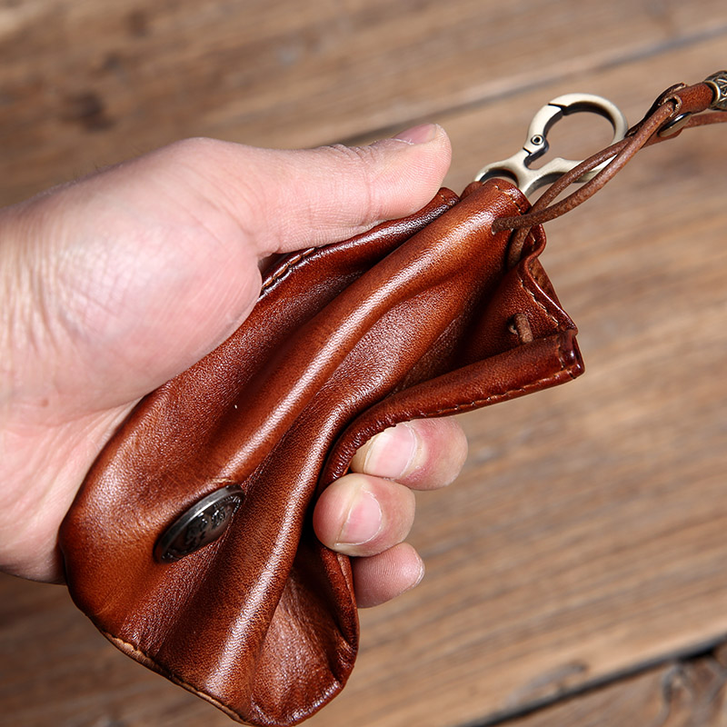 Retro Handmade Genuine Leather Zero Wallet Minimalist Car Key Bag Multifunction Head Layer Plant Tannic Bull Leather Coin Bag Pendant