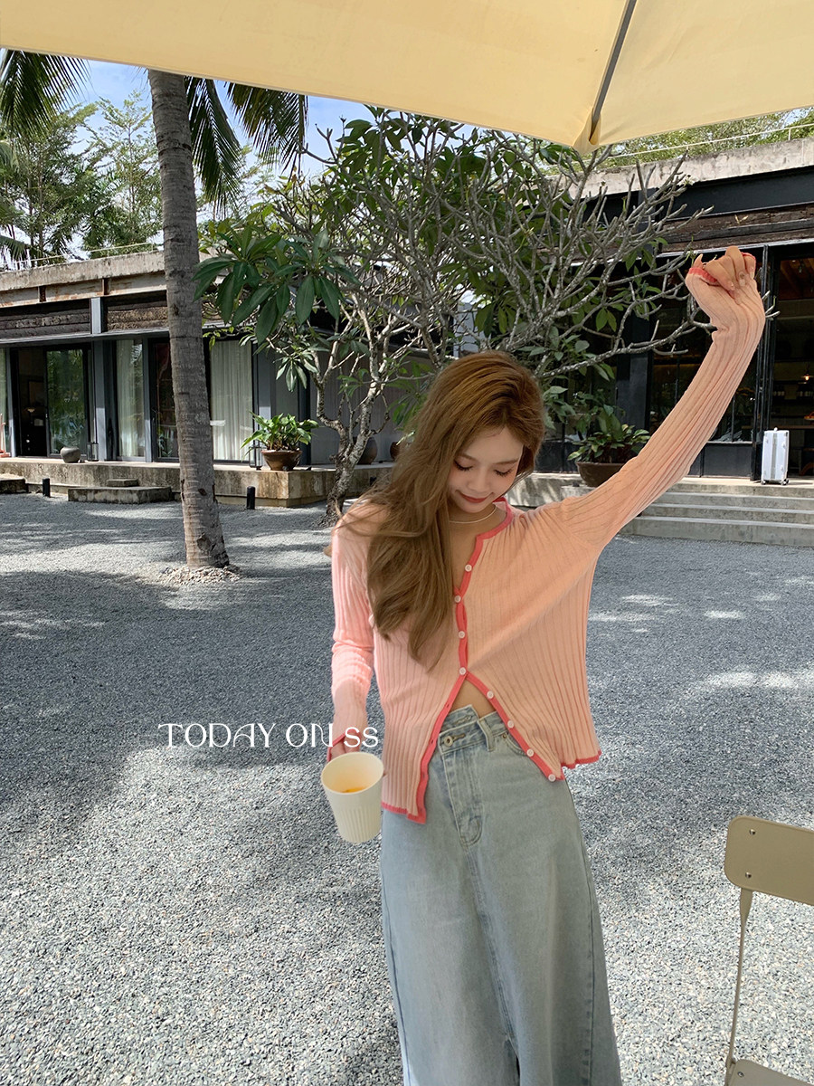 Today on Favorite Collage Side Design Sensation Slim Long Sleeves Mesh Red Ins Crater Knit Cardigan