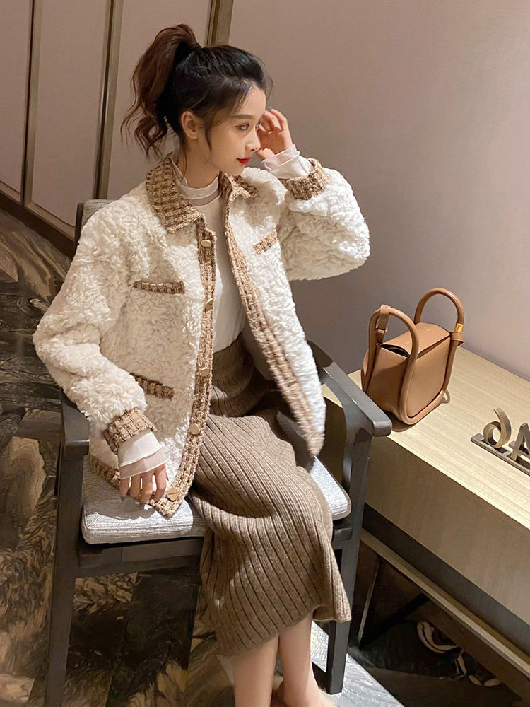 Small fragrant wind lamb wool short coat female autumn winter 2021 new small sub advanced senses gush thickened fur integrated