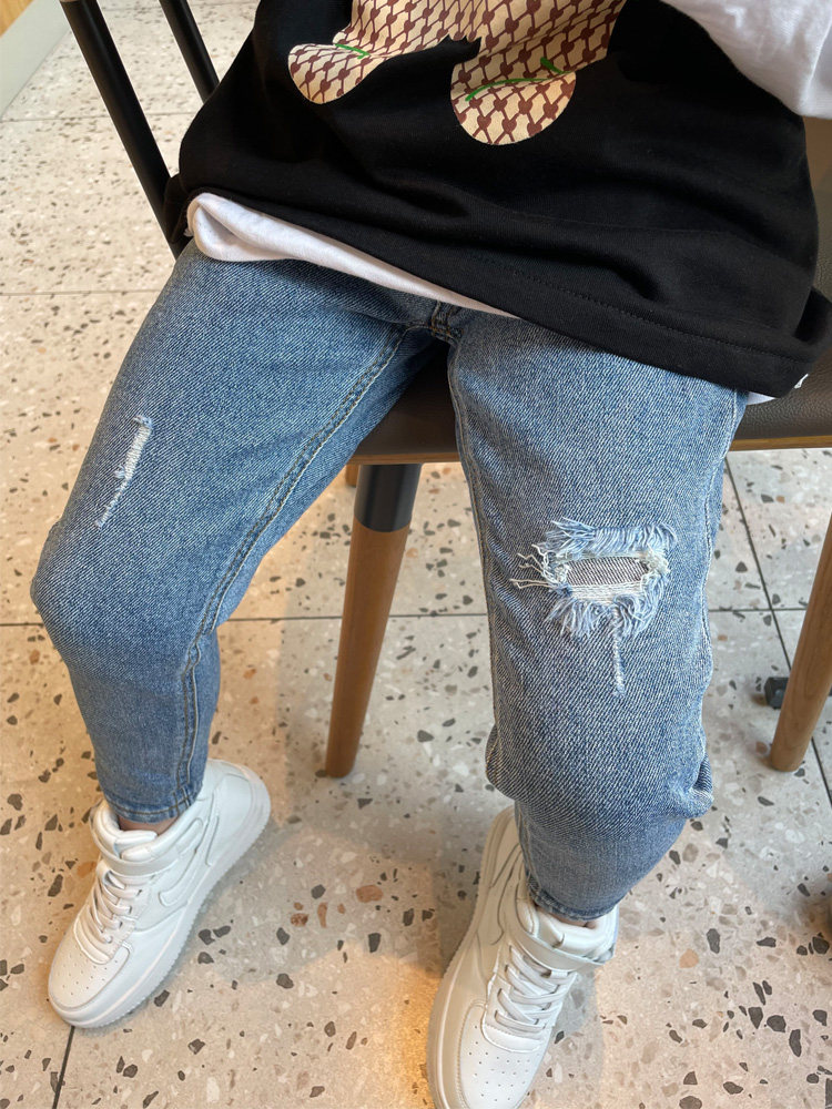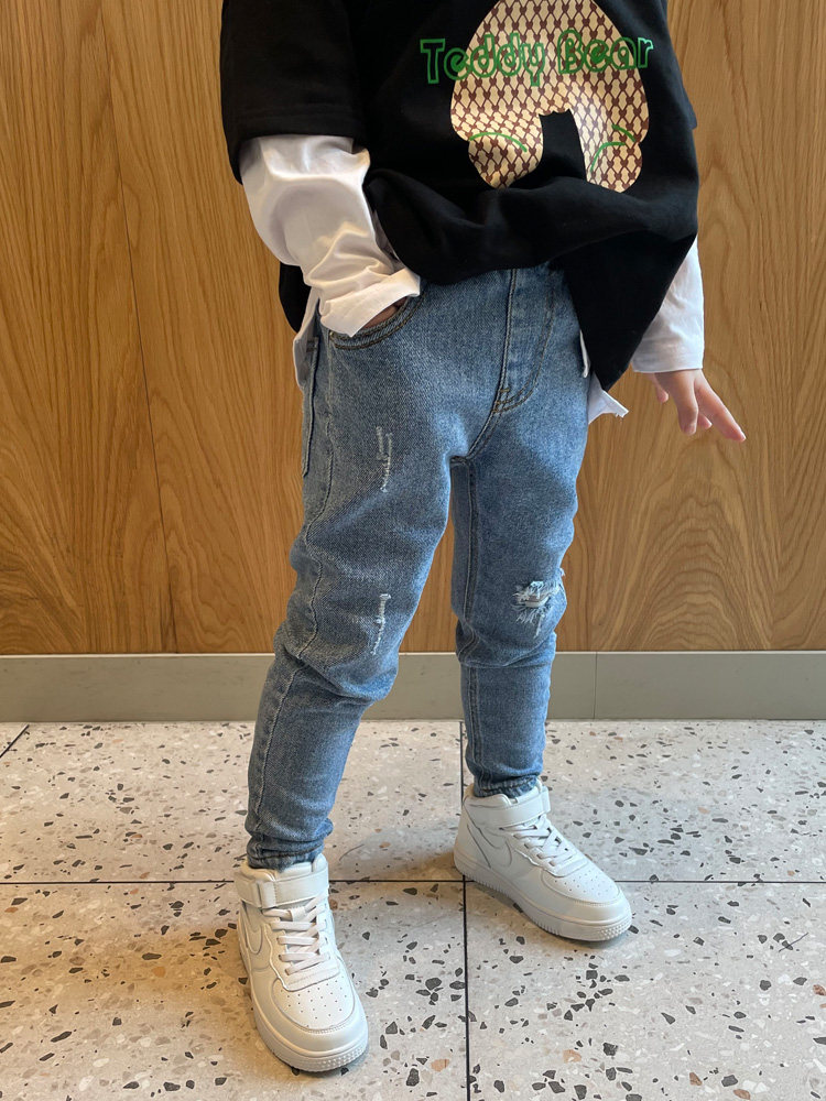 Boy's broken hole Cowboy small foot Supper body pants Boy clothing Han version 2022 Spring new pint of skinny version Baby Child long pants