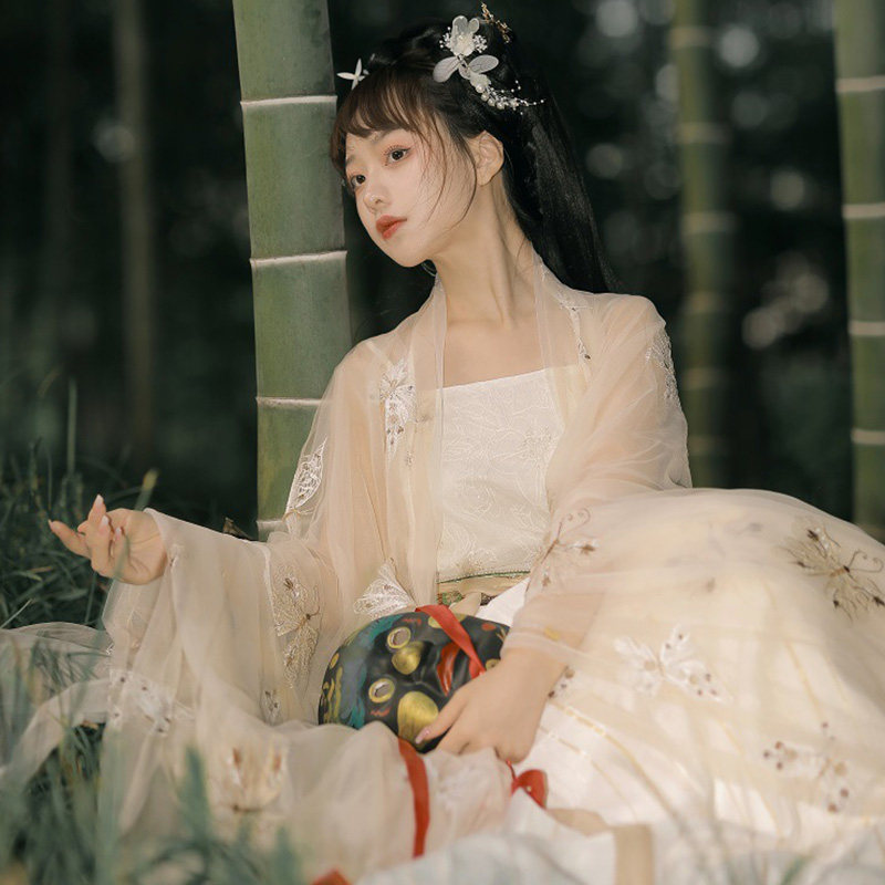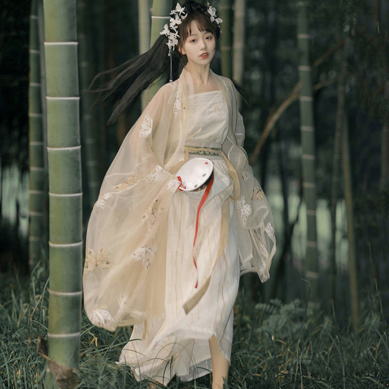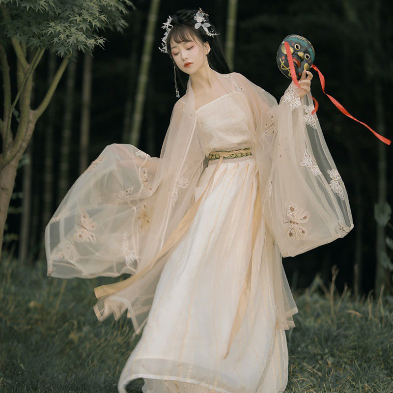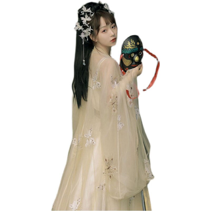 Qingyin original Weijin style Hanfu female fairy air elegant ancient style wide-sleeved fairy skirt spring and autumn Chinese style waist-length ancient costume