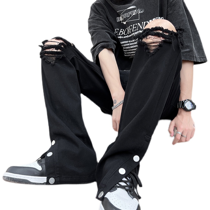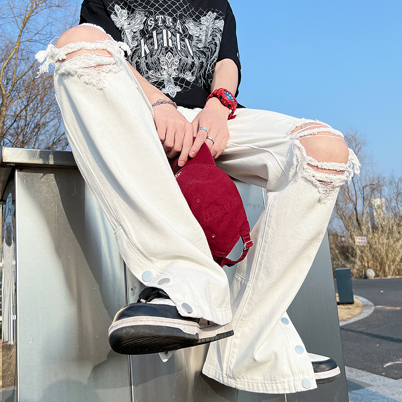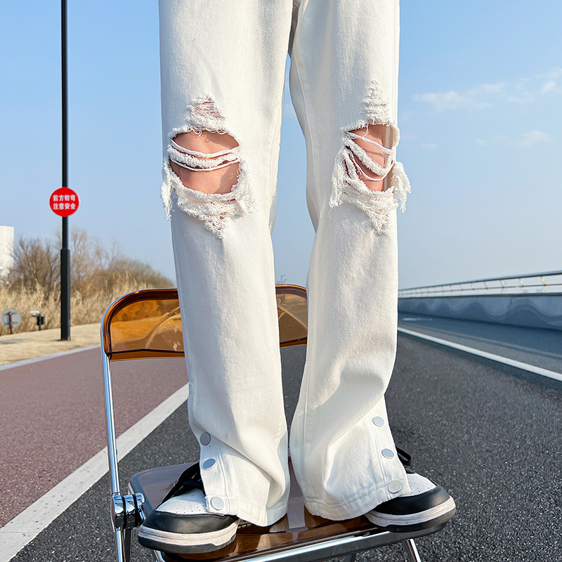 Euro-American High Street vibe trousers niche design hole jeans to dive small foot summer forklift trousers