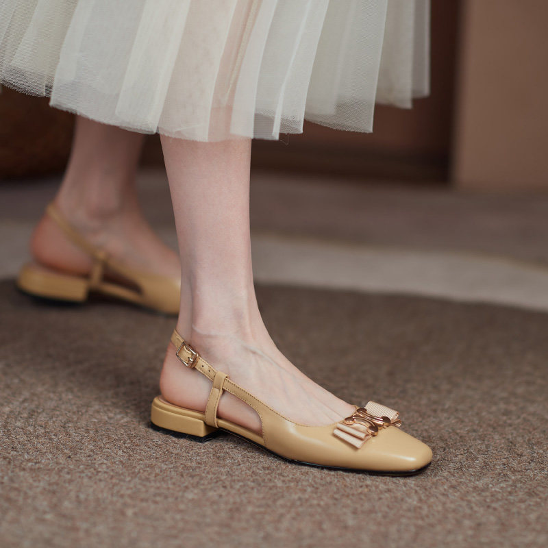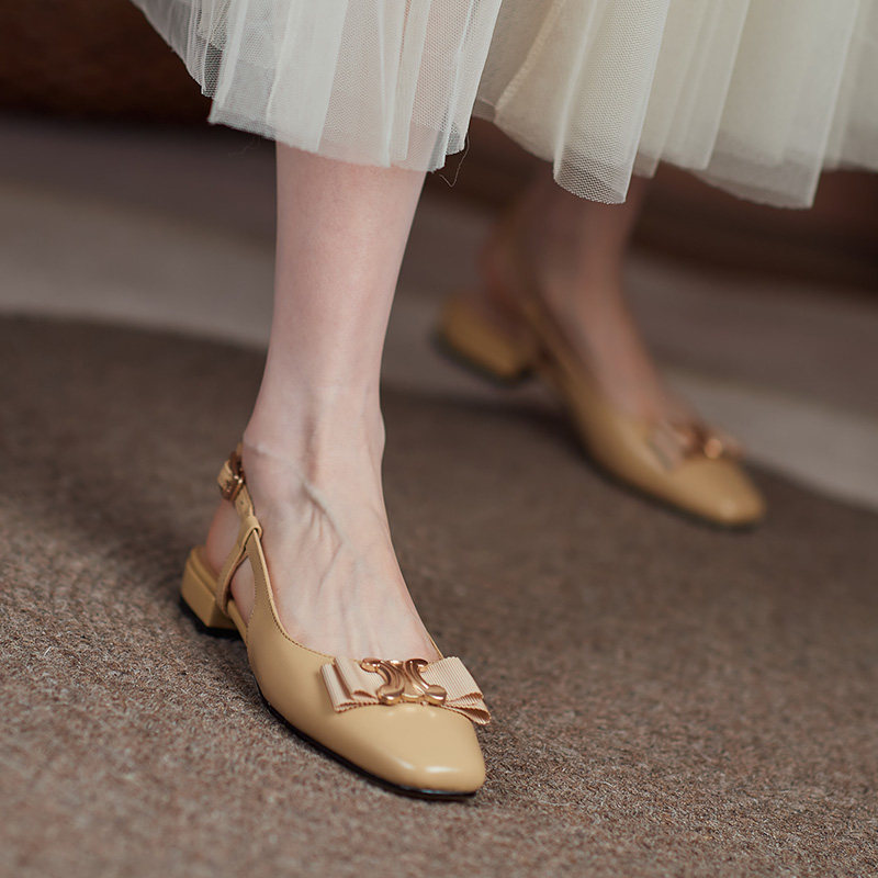 ann it Temperament Ladies ~ 2022 Square Heads Fairy Wind Sandals Women Flat-bottomed Fashion Butterfly Knots Shoes 4CM