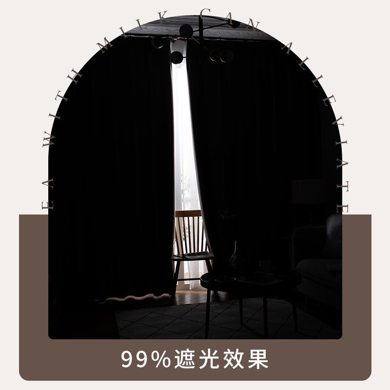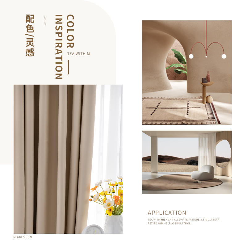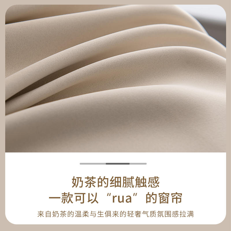 2022 new light luxury milk tea color Japanese style full shading bedroom polyester curtain modern minimalist sunshade hook type