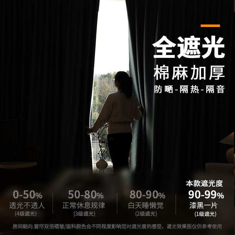 2022 new hook-type curtains Nordic minimalist living room bedroom sunscreen full blackout cloth curtains shading and heat insulation