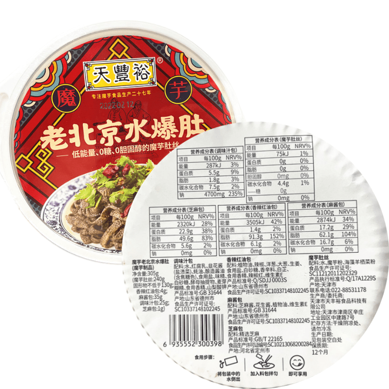 Tianfengyu Konjac Old Beijing Water Burst Belly Traditional Flavor 305g Vegetarian Hairy Belly Free Cooking Instant Food Cold Konjac
