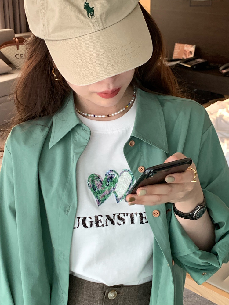 TMH STUDIO girl's dream love print short-sleeved t-shirt female summer 2022 new cotton round neck top