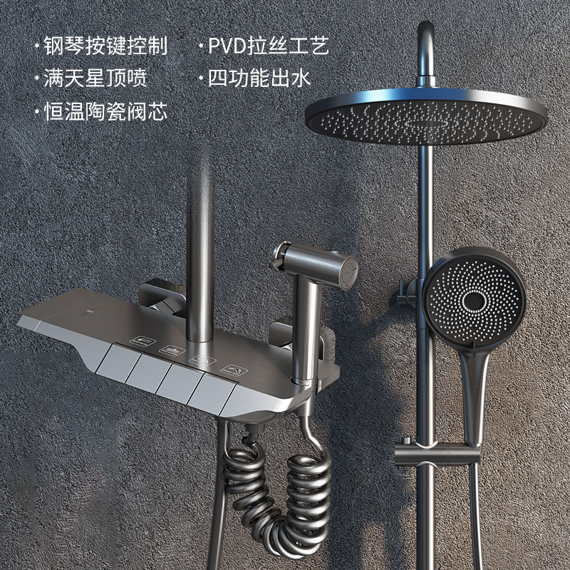 Gun ash (piano button - digital display hot and cold) 13 inch square shower gun ash (piano button - digital display constant temperature) 13 inch square shower gun ash (piano button - digital display hot and cold) 10 inch round shower