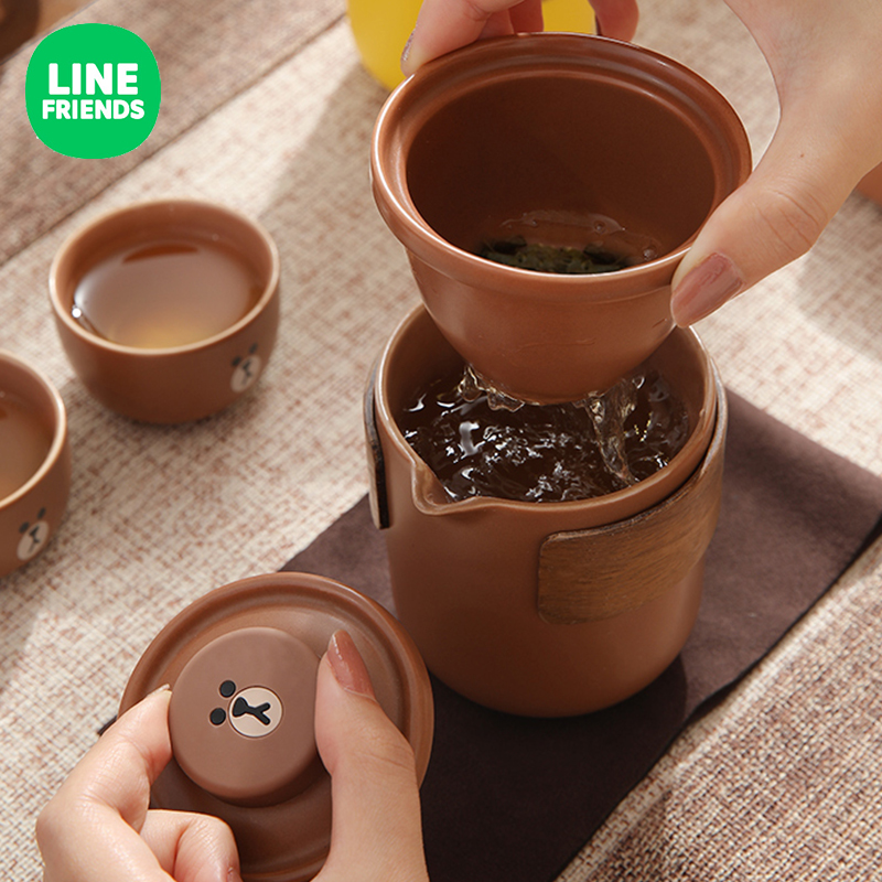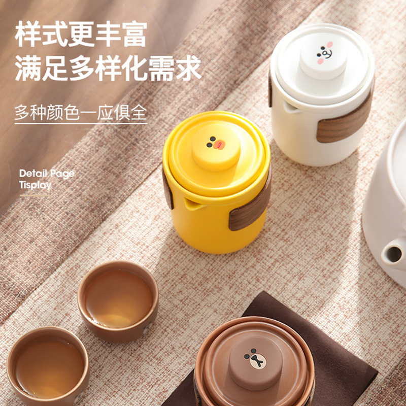 Line Brown Bear Cartoon Ceramic Portable Tea Set One Pot of Two Cup Gongfu Tea suit Quick Guest Cup Outdoor Travel Package