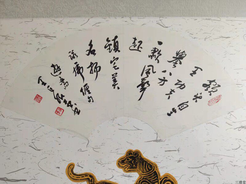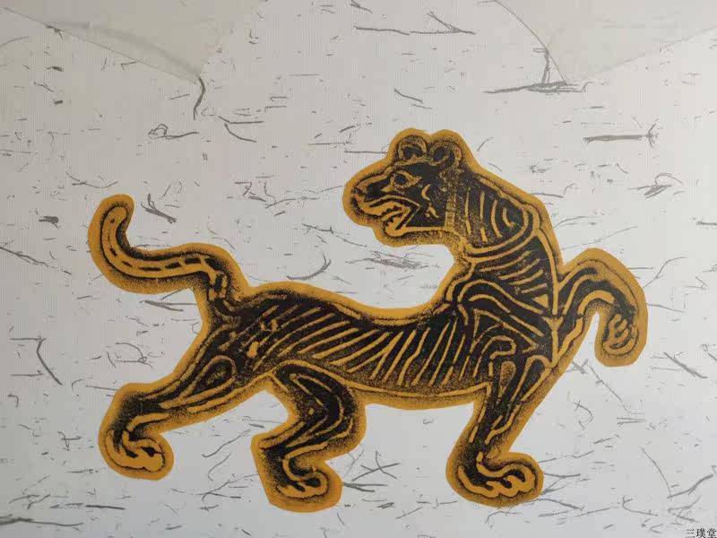 Han Dynasty White Tiger Painting like Brick Inscription and Island City Bookseller Mr. Wang Tingwei's calligraphy pure handmade framed solid wood frame