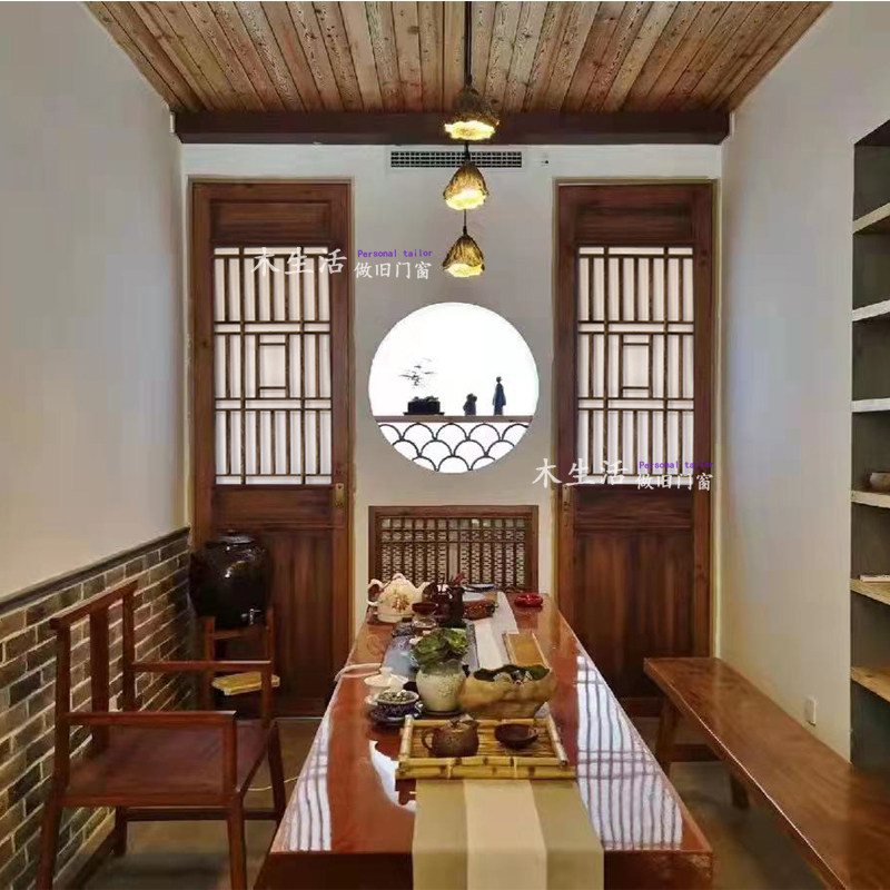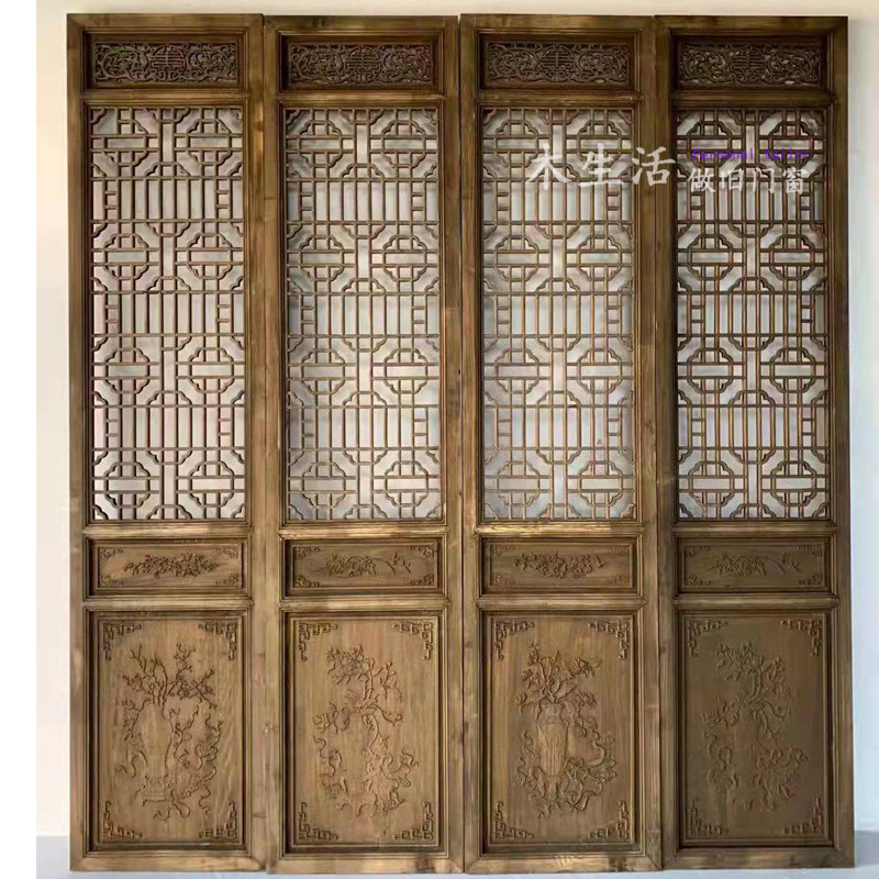 Dongyang wood carving Chinese solid wood flower lattice imitation ancient doors and windows to make old ancient wind carved and flower partition screen background wall customization