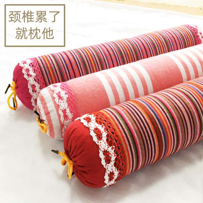 Cervical Spine Pillow Candy Pillow Round Buckwheat Shell Adults Single Cotton cotton Old coarse cloth printed Neck pillowcase pillow pillowcase