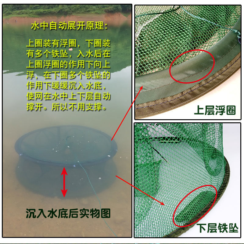 Round Hand Tossed Fishing Net Automatic Fishing Cage Folding Shrimp Cage Fish Nets Catch Yellow Eel Loach Lobster Crab Cage God