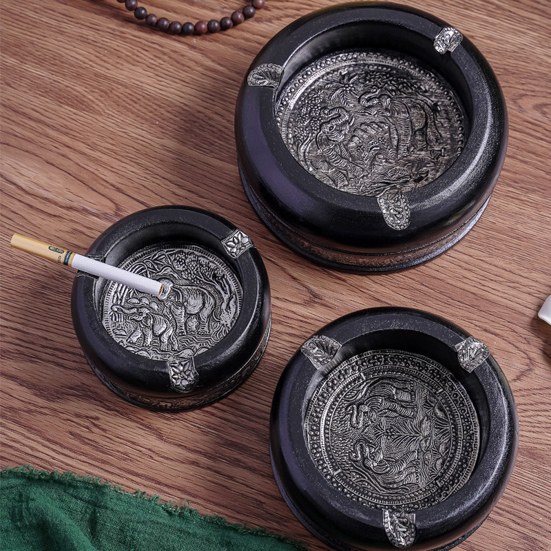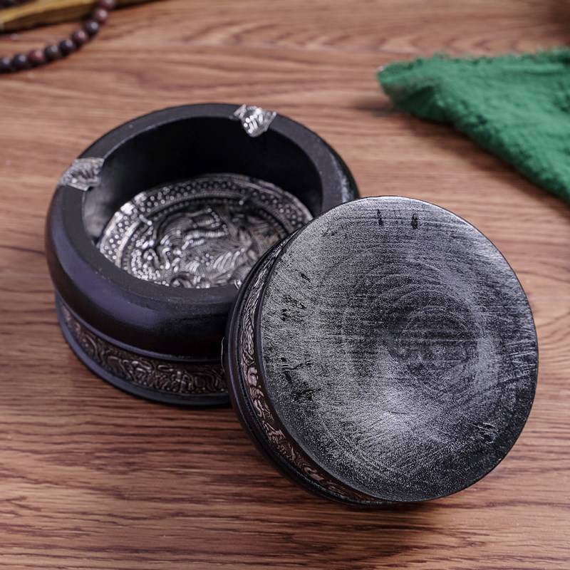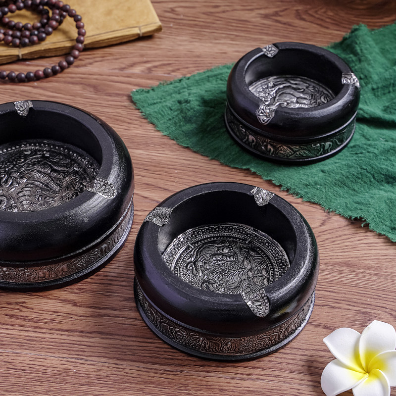 Wood Tobacco Ashtray Adornment Home Living Room Tea Table Tea Table Tea Table Comeback Ancient Thai Solid Wood Cigarette Cylinders Creative features No cover
