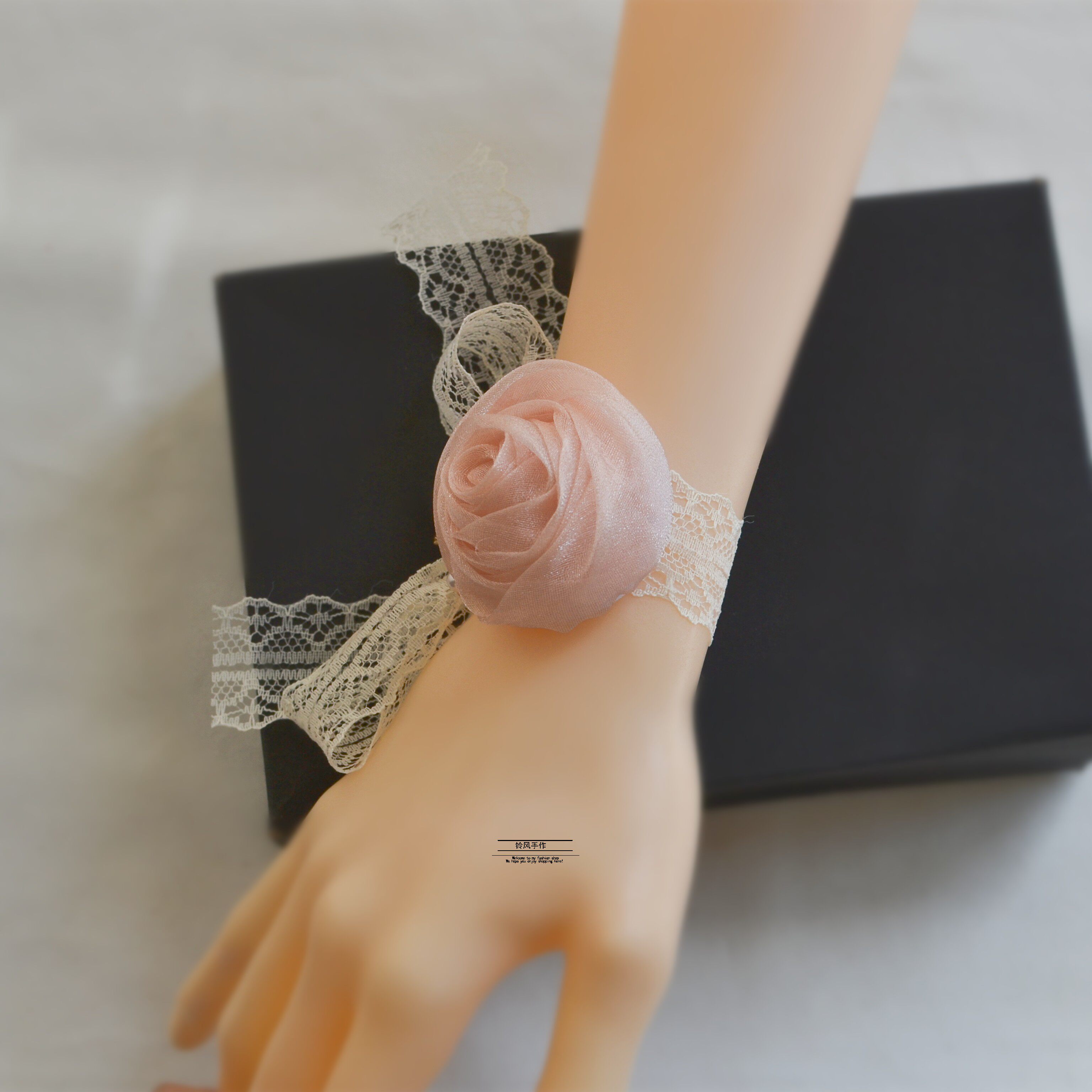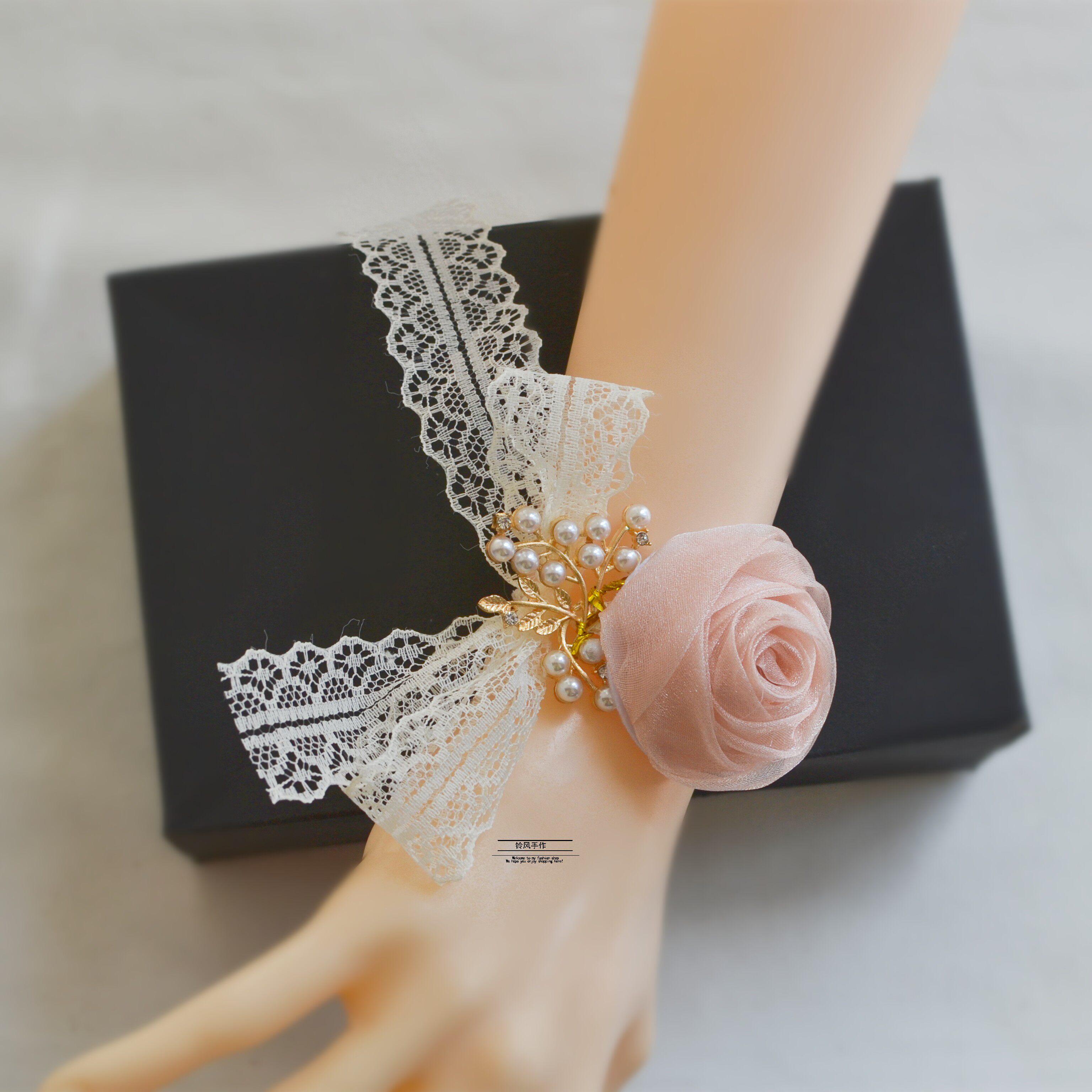 Champagne powder wrist flower bridesmaid wedding bride champagne ins bracelet flower super fairy sweet sister group hand flower wedding