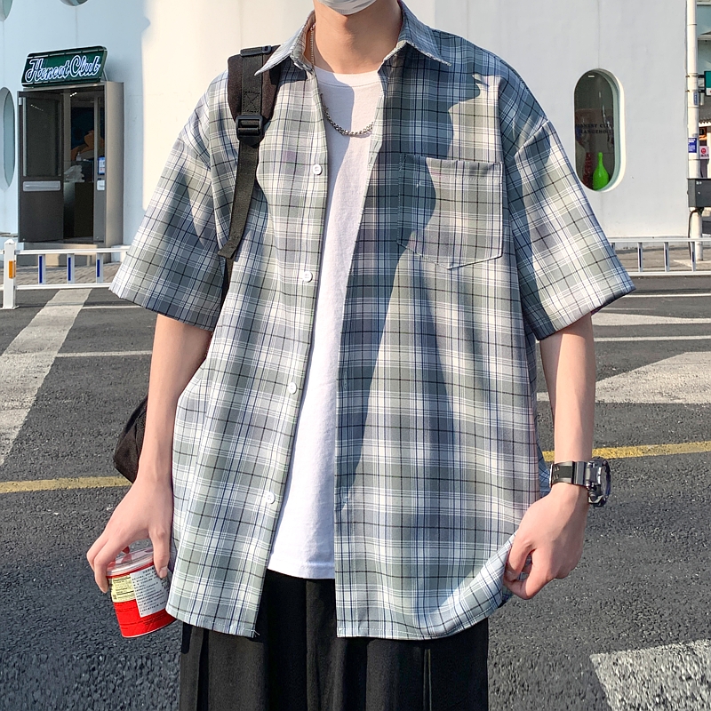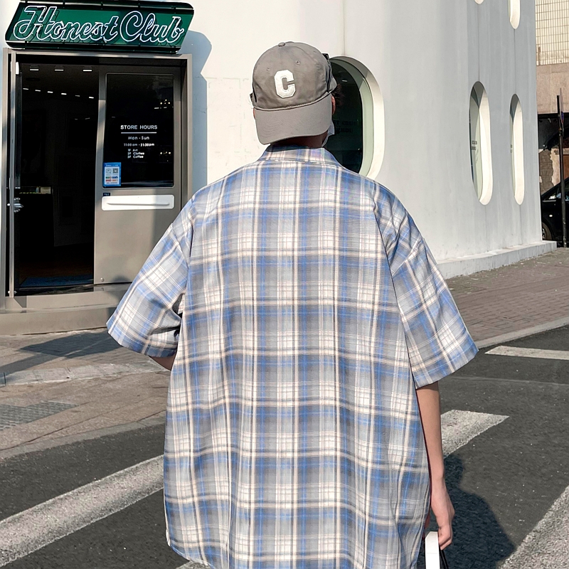 Pink Plaid Short Sleeve Shirt Woman Design Sensation Small Crowdcard Trend 100 Hitch Striped Shirt Oversize