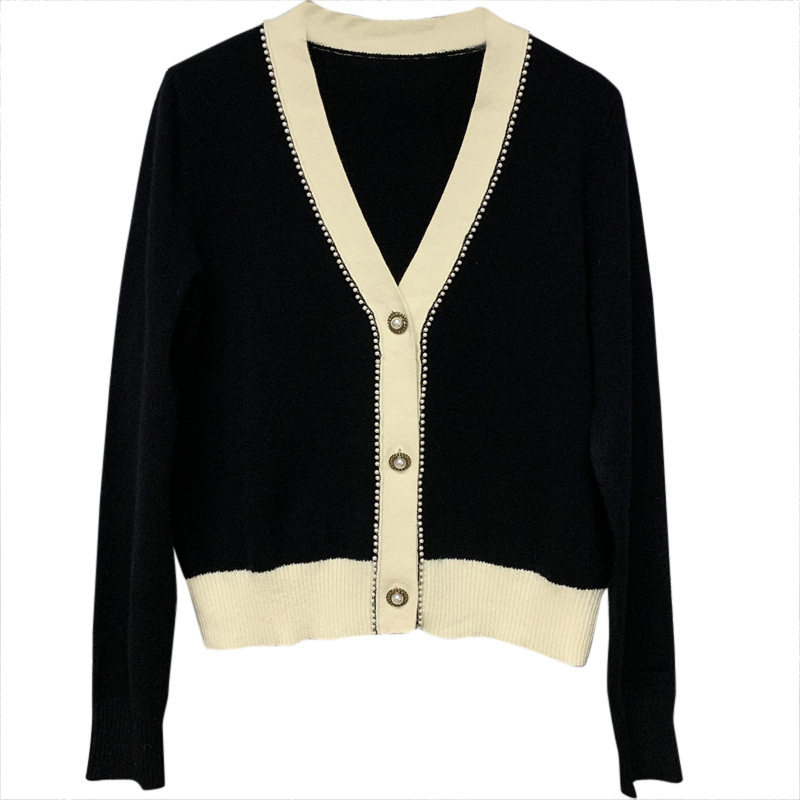 The counter replaces the 2022 autumn and winter new black long-sleeved top V-neck wool small fragrance knitted cardigan coat
