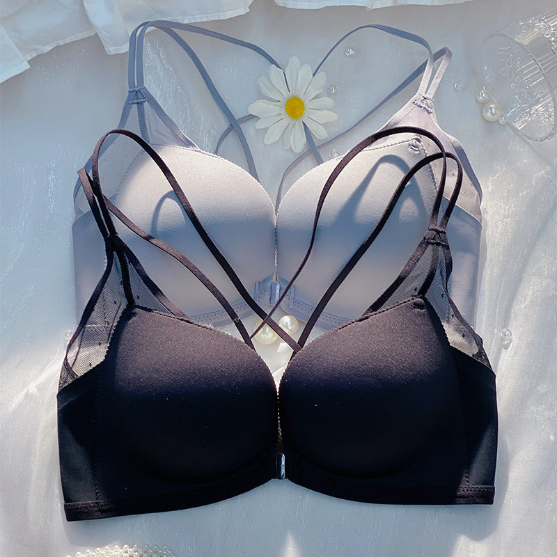 Front buttoned underwear Female small breasts Gathered Without Marks COMFORT SENSATION CLOSETED BREAST UNDERWEAR SUIT GLOSSY CROSS MERRY-BACK