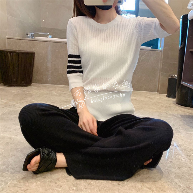TB Thom Summer Four Pole Academy Wind Ice silk short sleeve T-shirt Knitted Round Collar TB Half Sleeve Female Tide