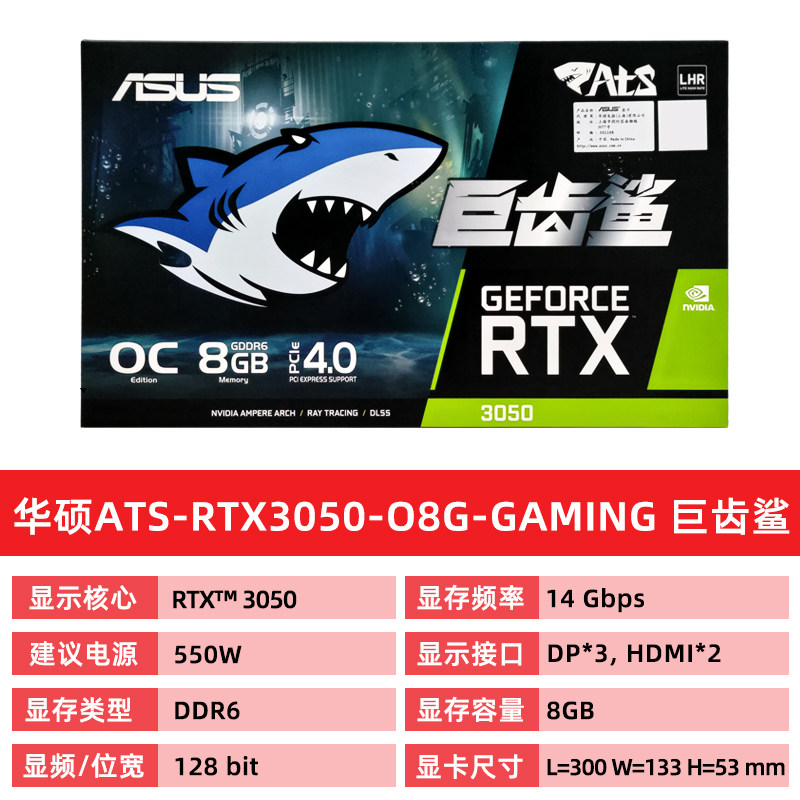 SUSTech ATS-RTX3050-O8G-GAMING RTX3060-O12G giant tooth shark desktop computer display card